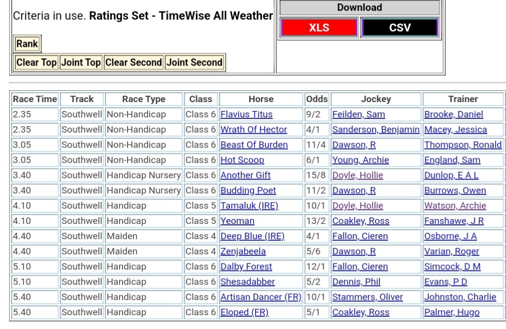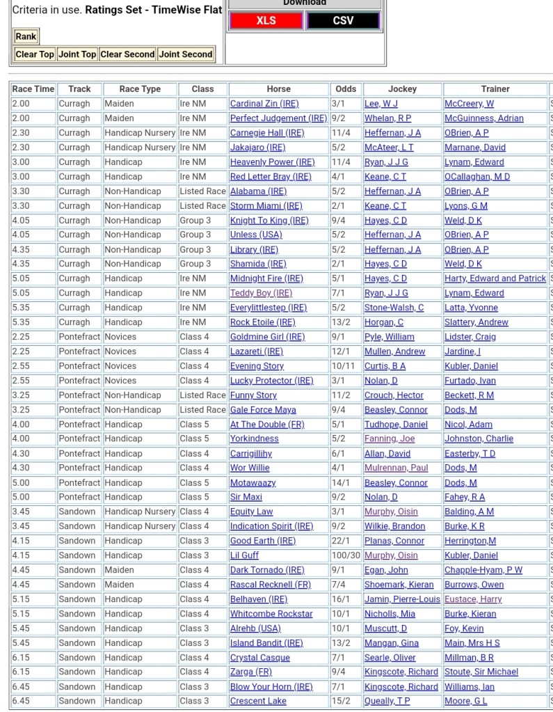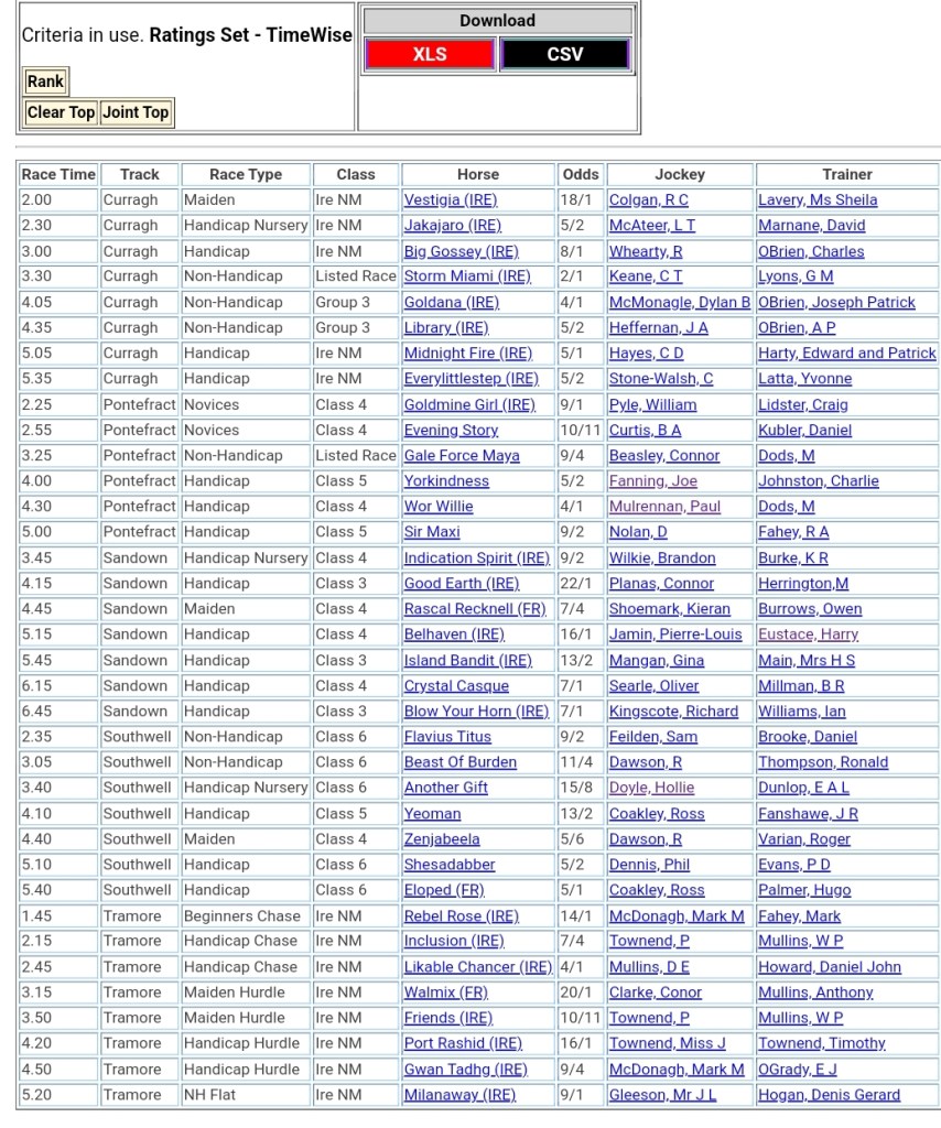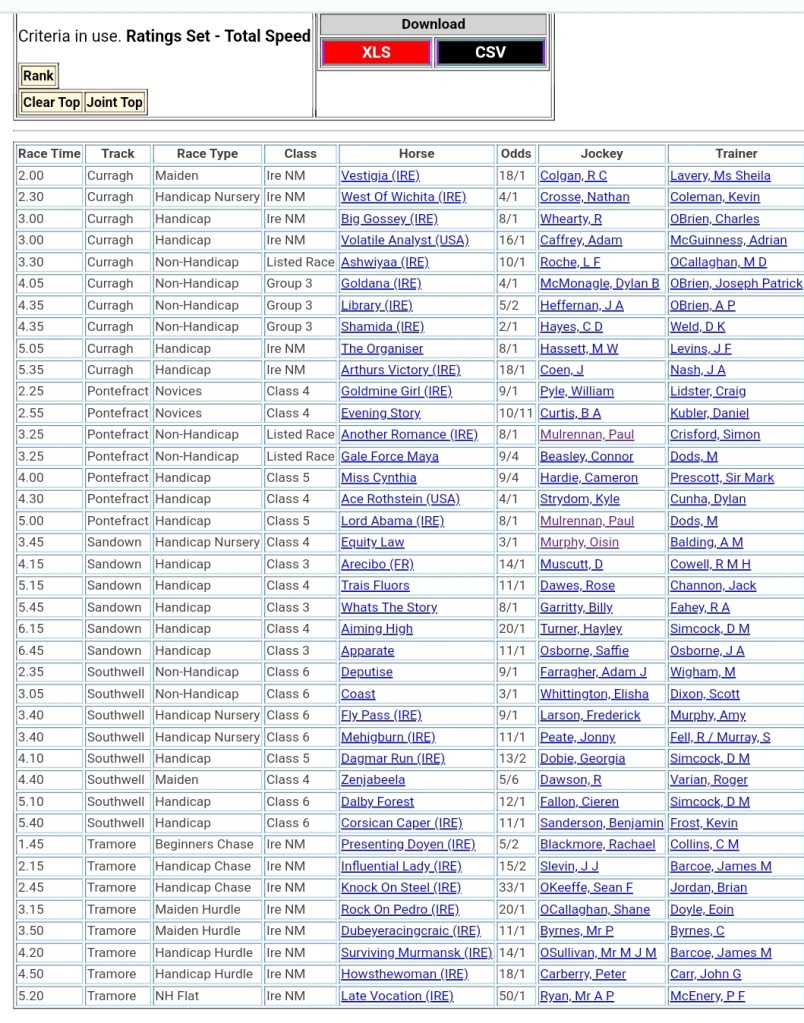 Top Speed Rated for today’s meetings ⏱️⤵️