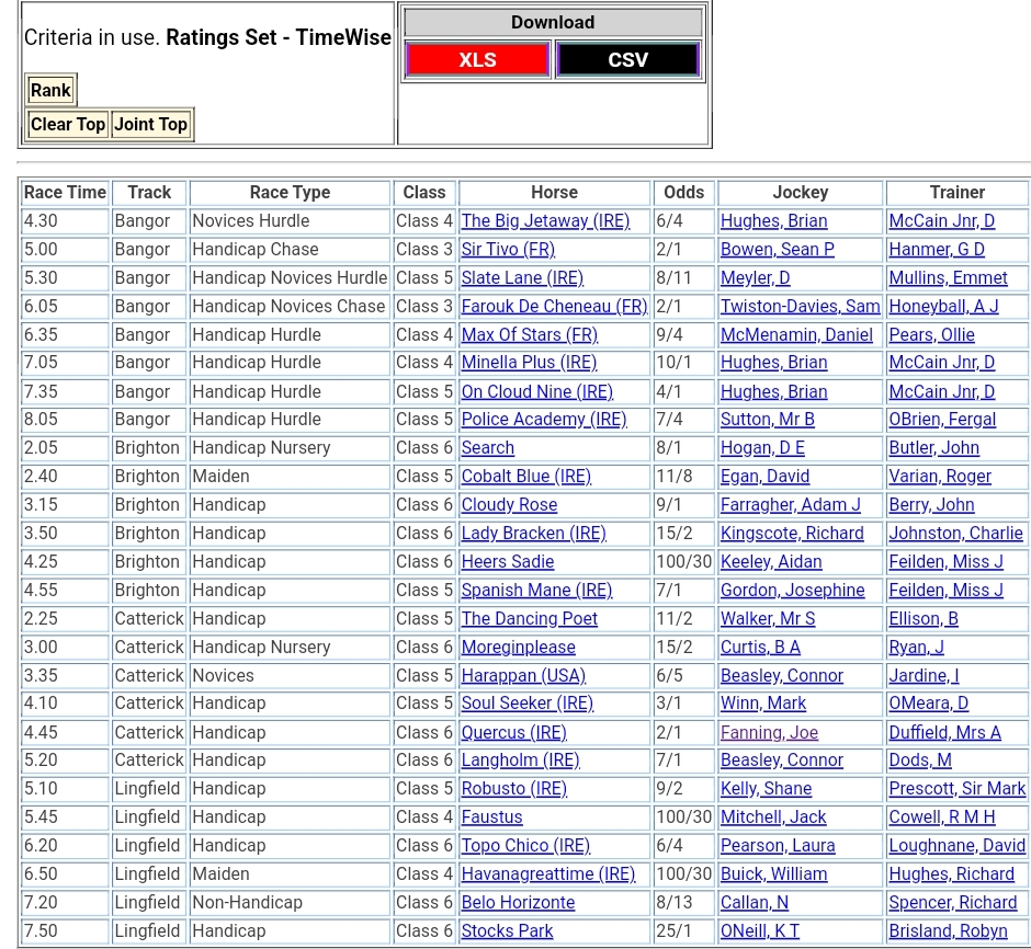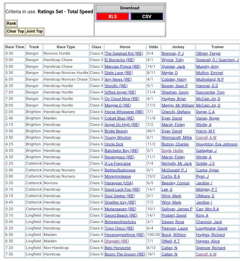 Top Speed Rated for today’s meetings ⏱️⤵️