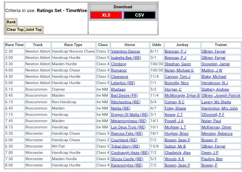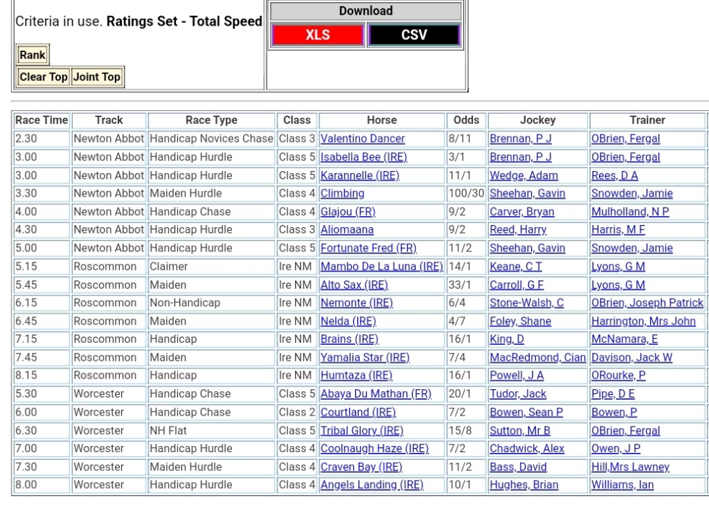 Top Speed Rated for today’s meetings ⏱️⤵️