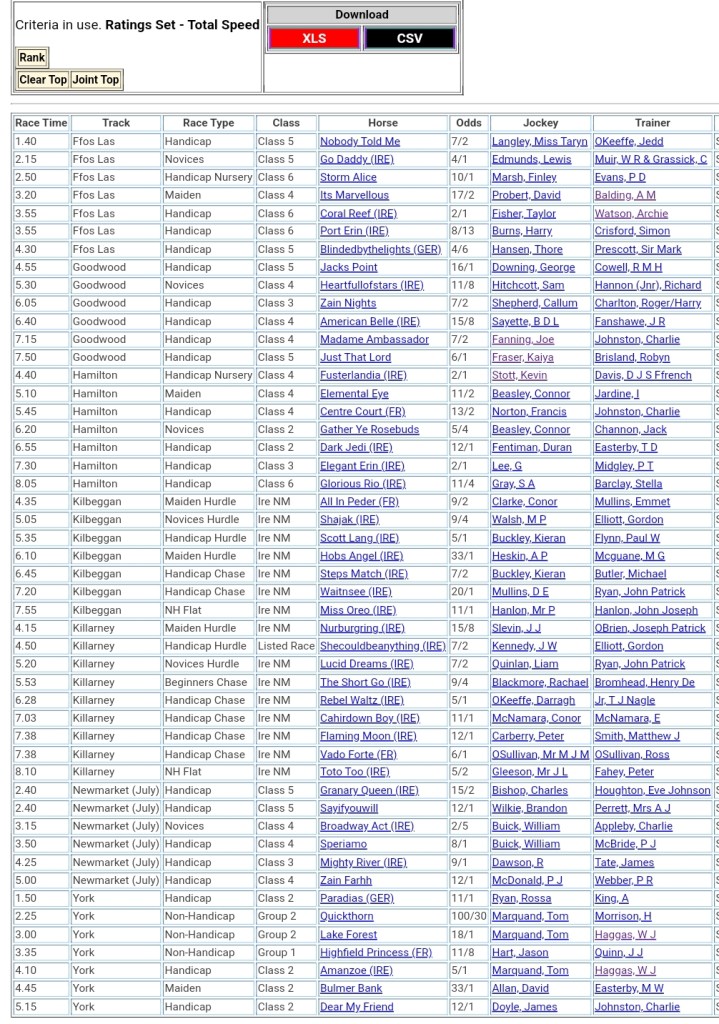 Top Speed Rated for today’s meetings ⏱️⤵️