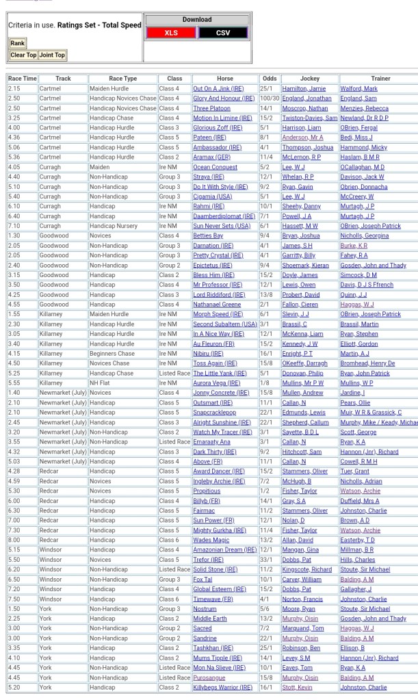 Top Speed Rated for today’s meetings ⏱️⤵️