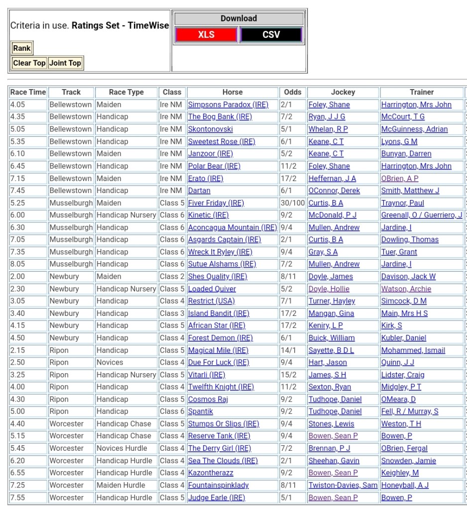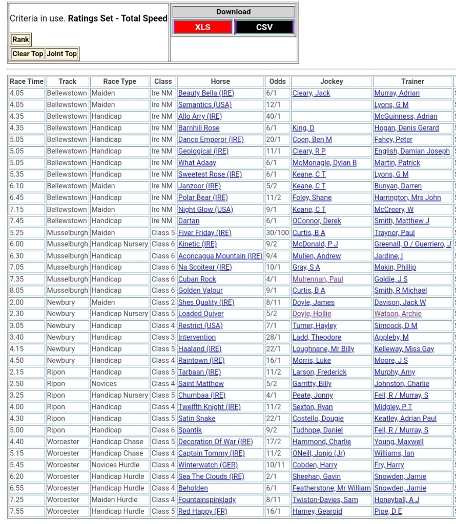 Top Speed Rated for today’s meetings ⏱️⤴️