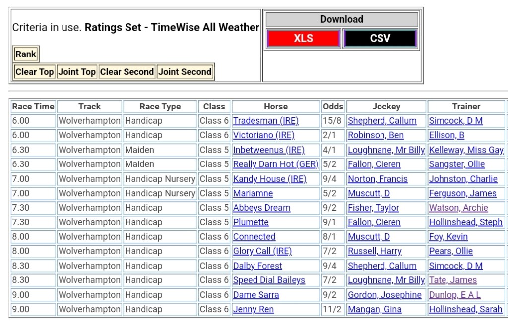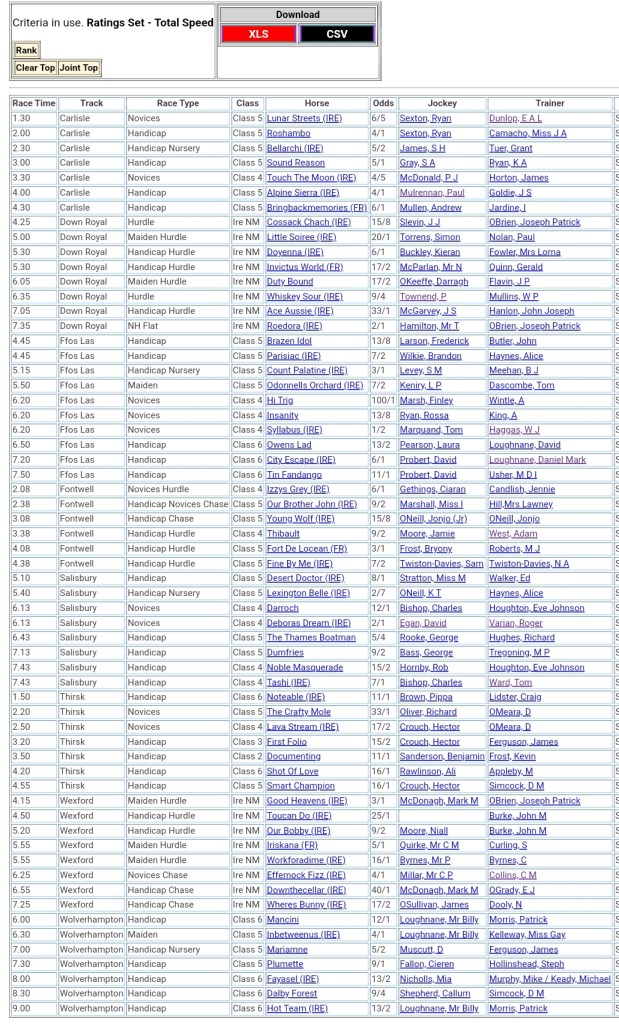 Top Speed Rated for today’s meetings ⏱️⤵️