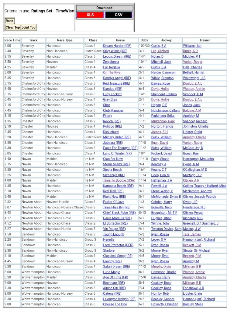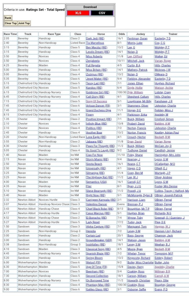 Top Speed Rated for today’s meetings ⏱️⤵️