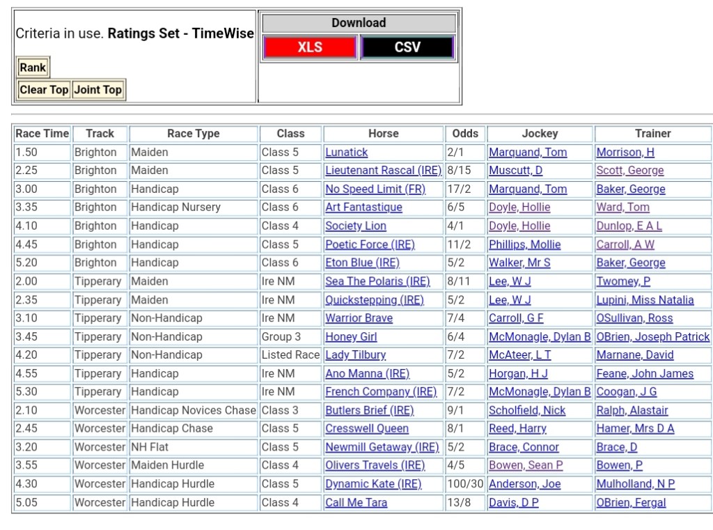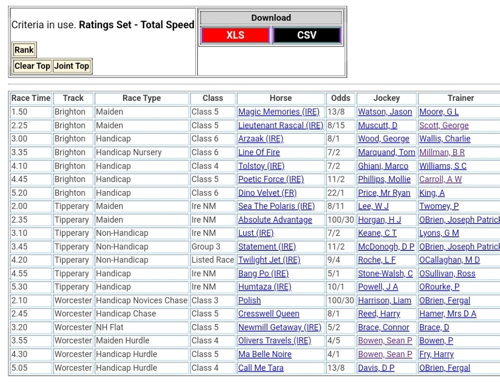 Top Speed Rated for today’s meetings ⏱️⤵️