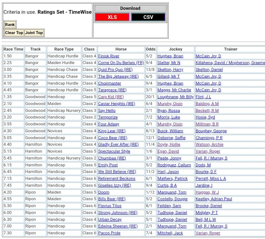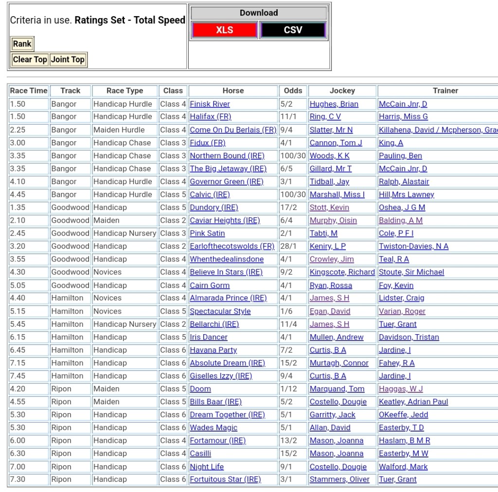 Top Speed Rated for today’s meetings ⏱️⤵️