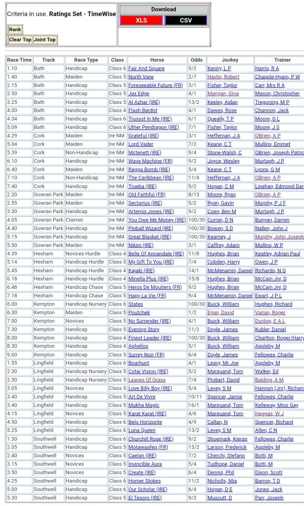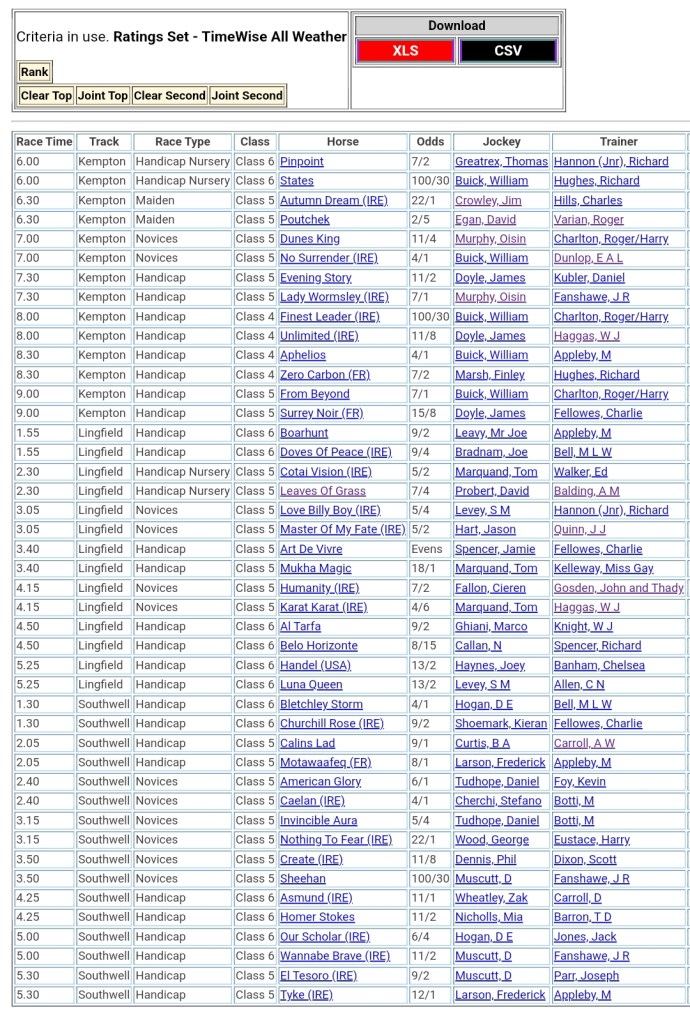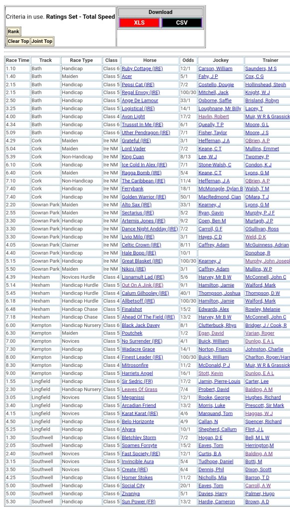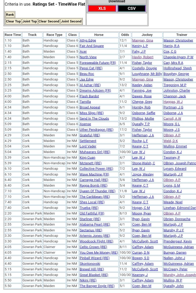 Top Speed Rated for today’s meetings ⏱️⤵️