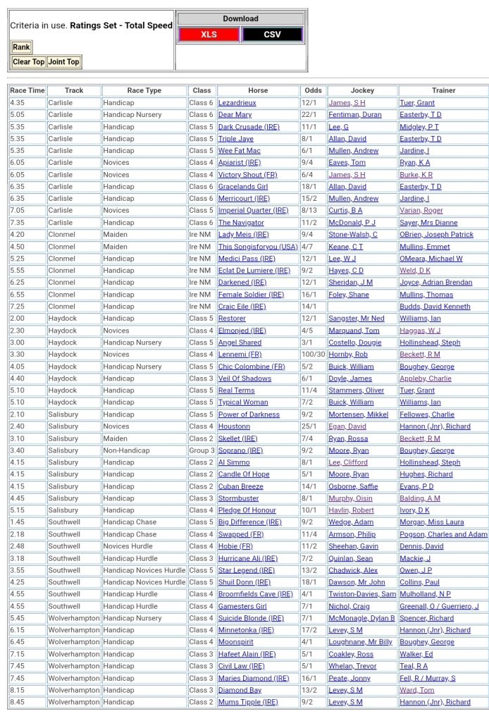 Top Speed Rated for today’s meetings ⏱️⤵️