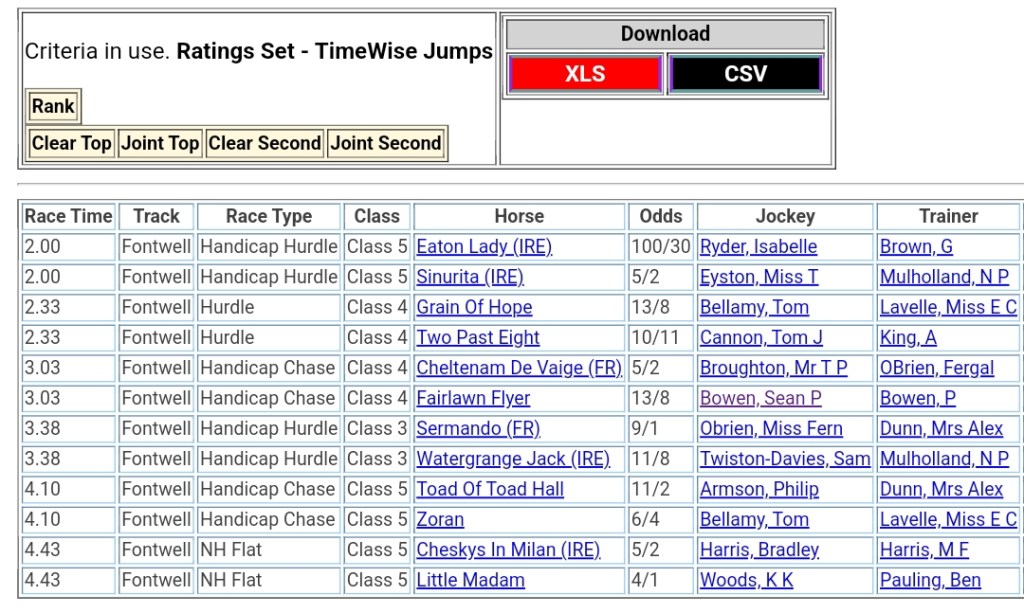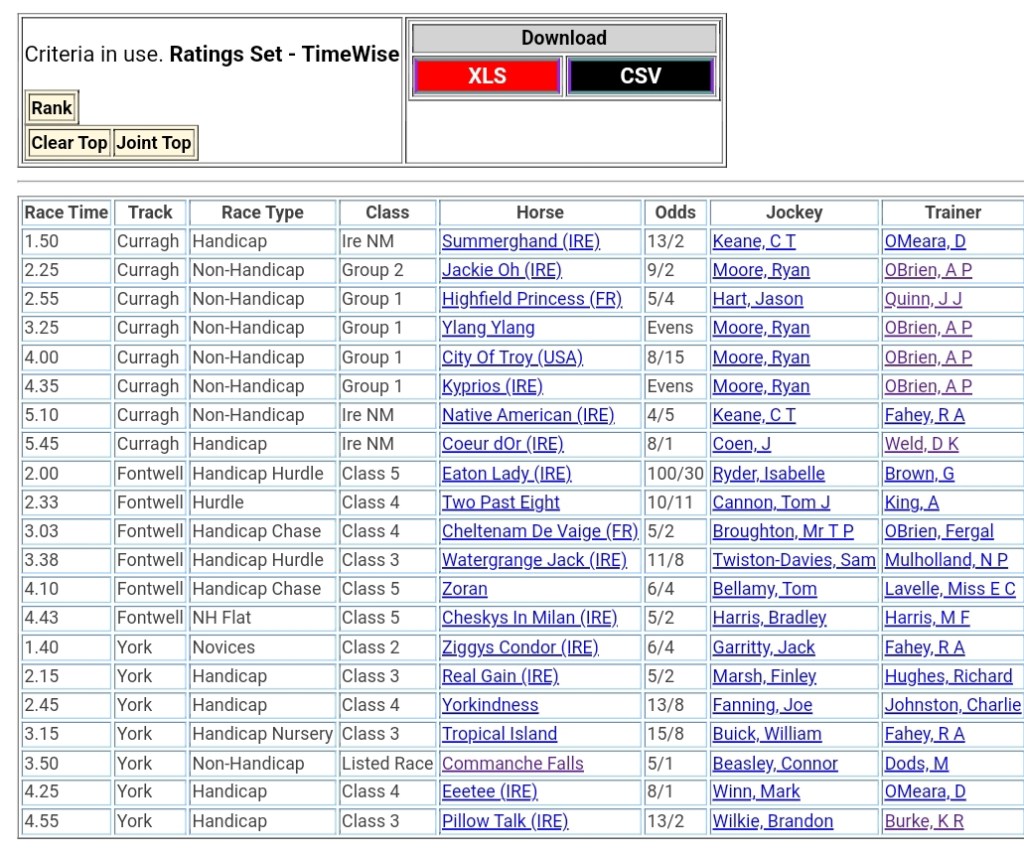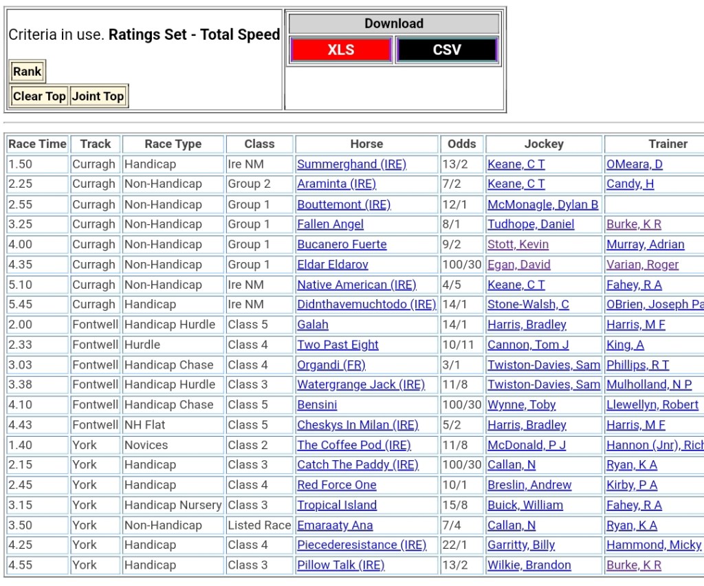 Top Speed Rated for today’s meetings ⏱️⤵️
