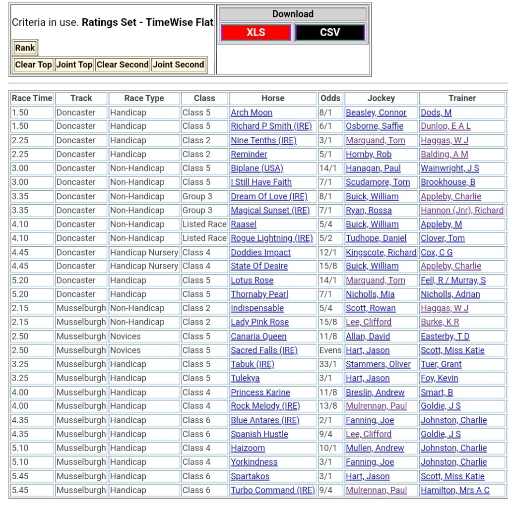 Doncaster & Musselburgh ⤴️