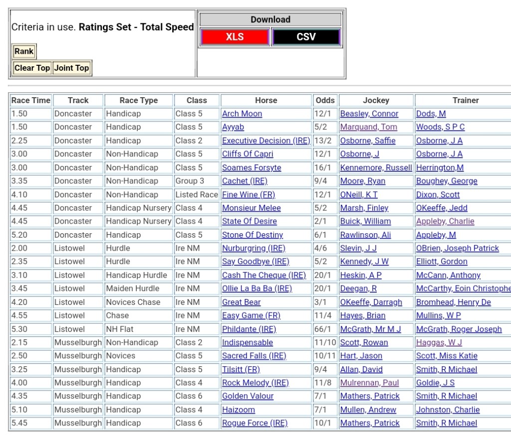 Top Speed Rated for today’s meetings ⏱️⤵️