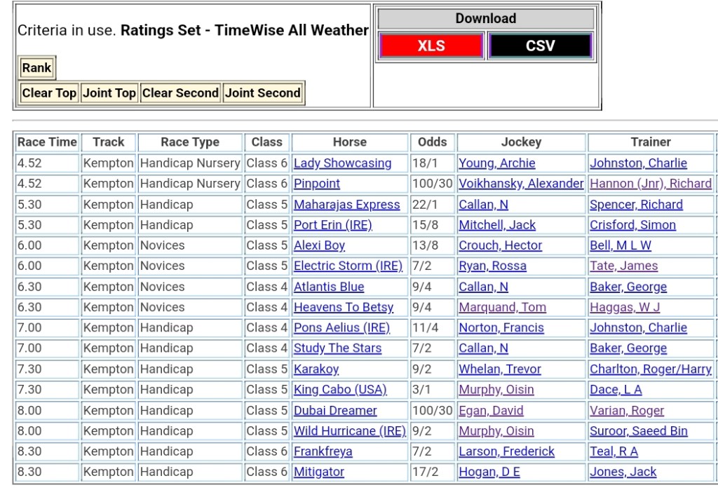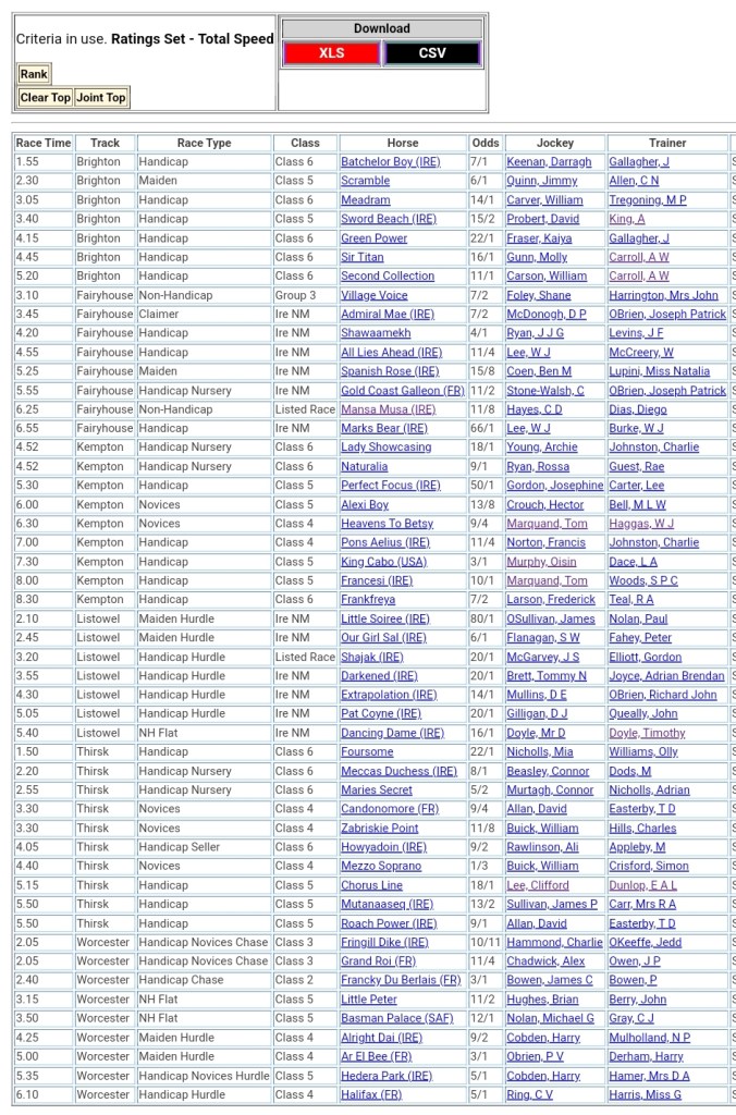 Top Speed Rated for today’s meetings ⏱️⤵️