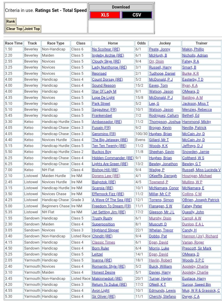 Top Speed Rated for today’s meetings ⏱️⤵️