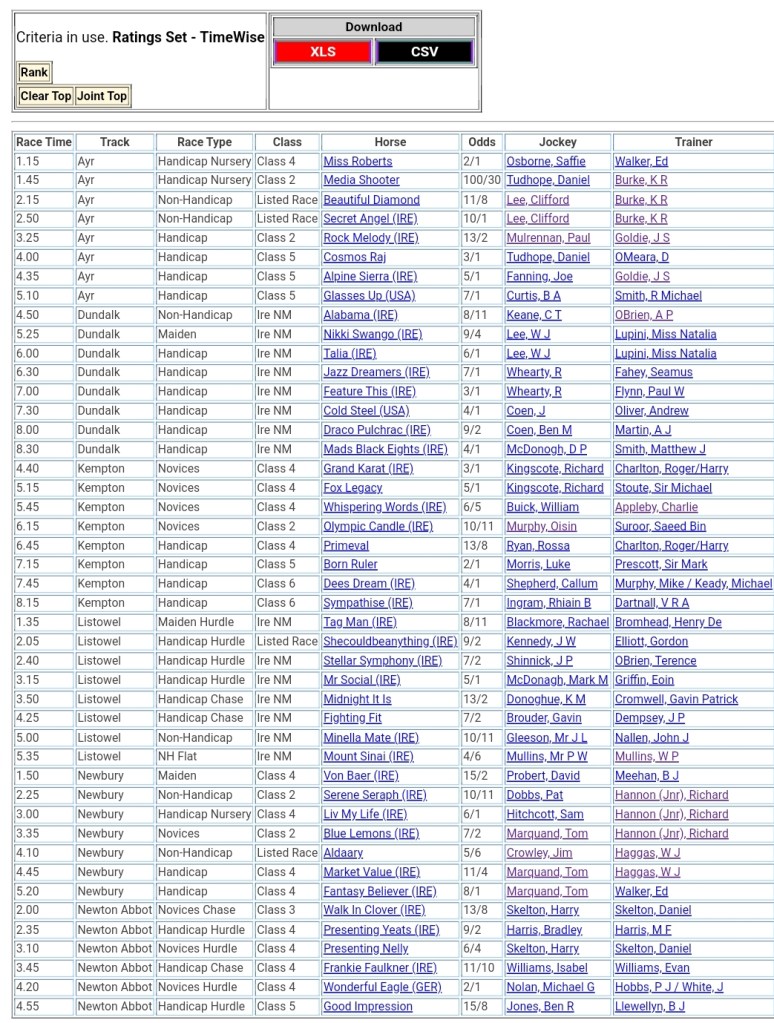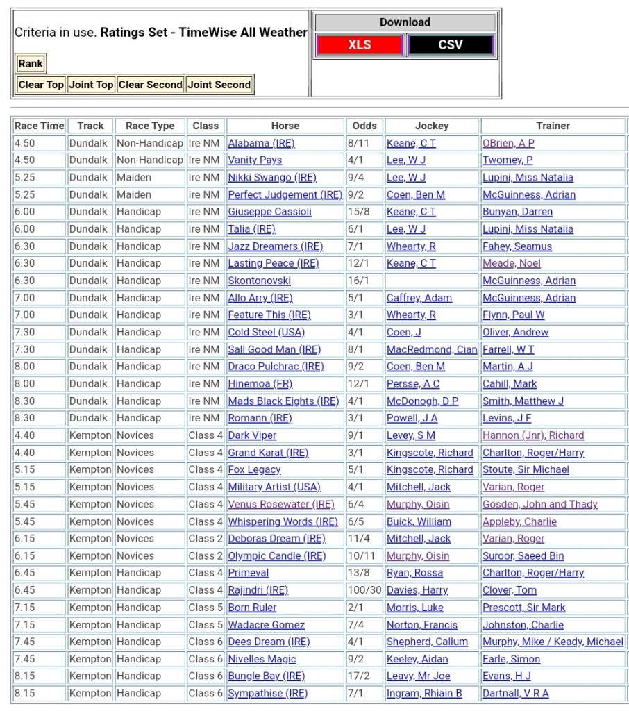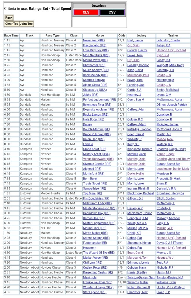 Top Speed Rated for today’s meetings ⏱️⤵️