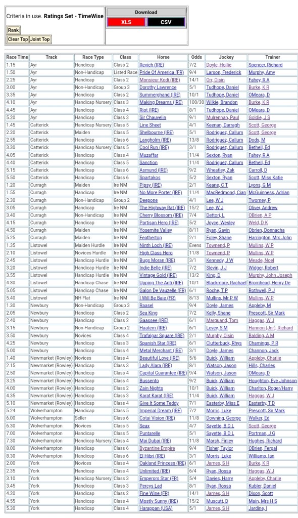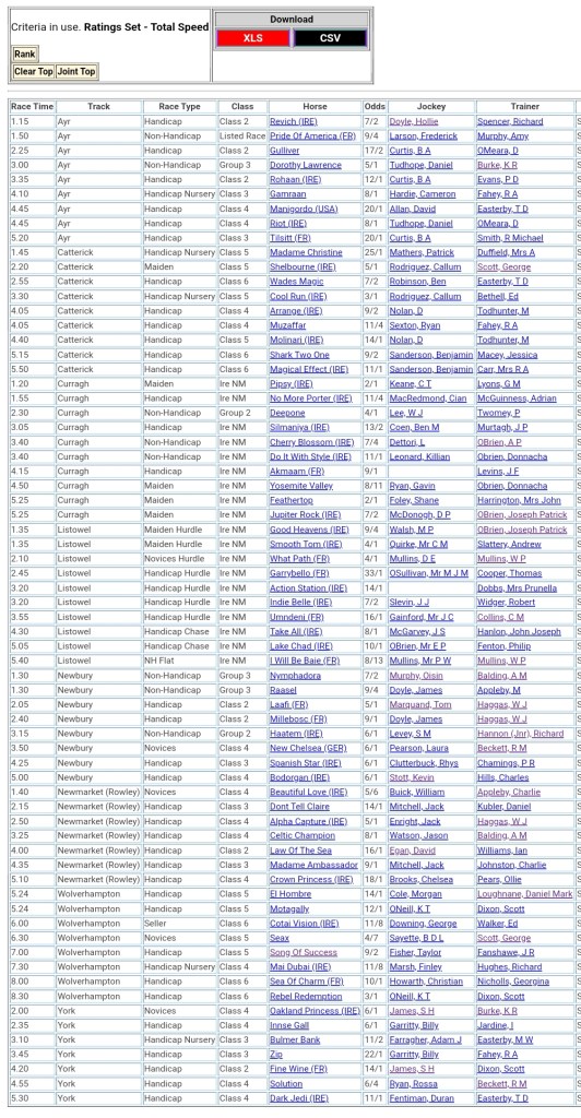 Top Speed Rated for today’s meetings ⏱️⤵️