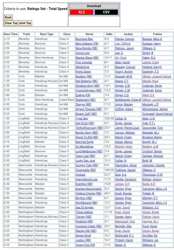 Top Speed Rated for today’s meetings ⏱️⤵️