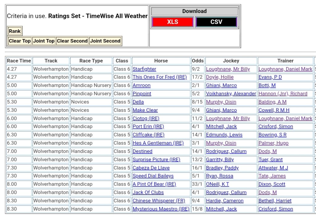 Top Speed Rated for today’s meetings ⏱️⤵️