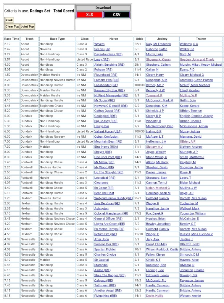 Top Speed Rated for today’s meetings ⏱️⤵️