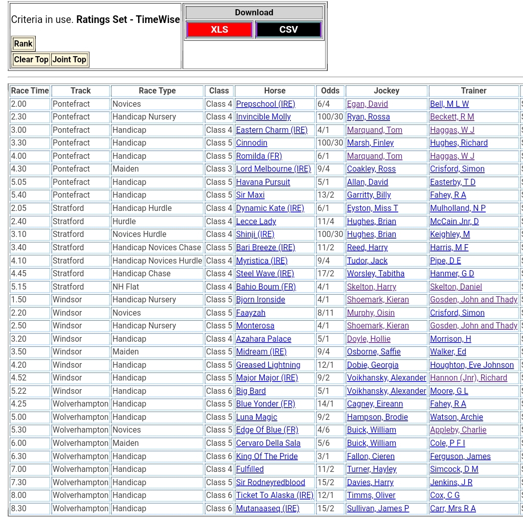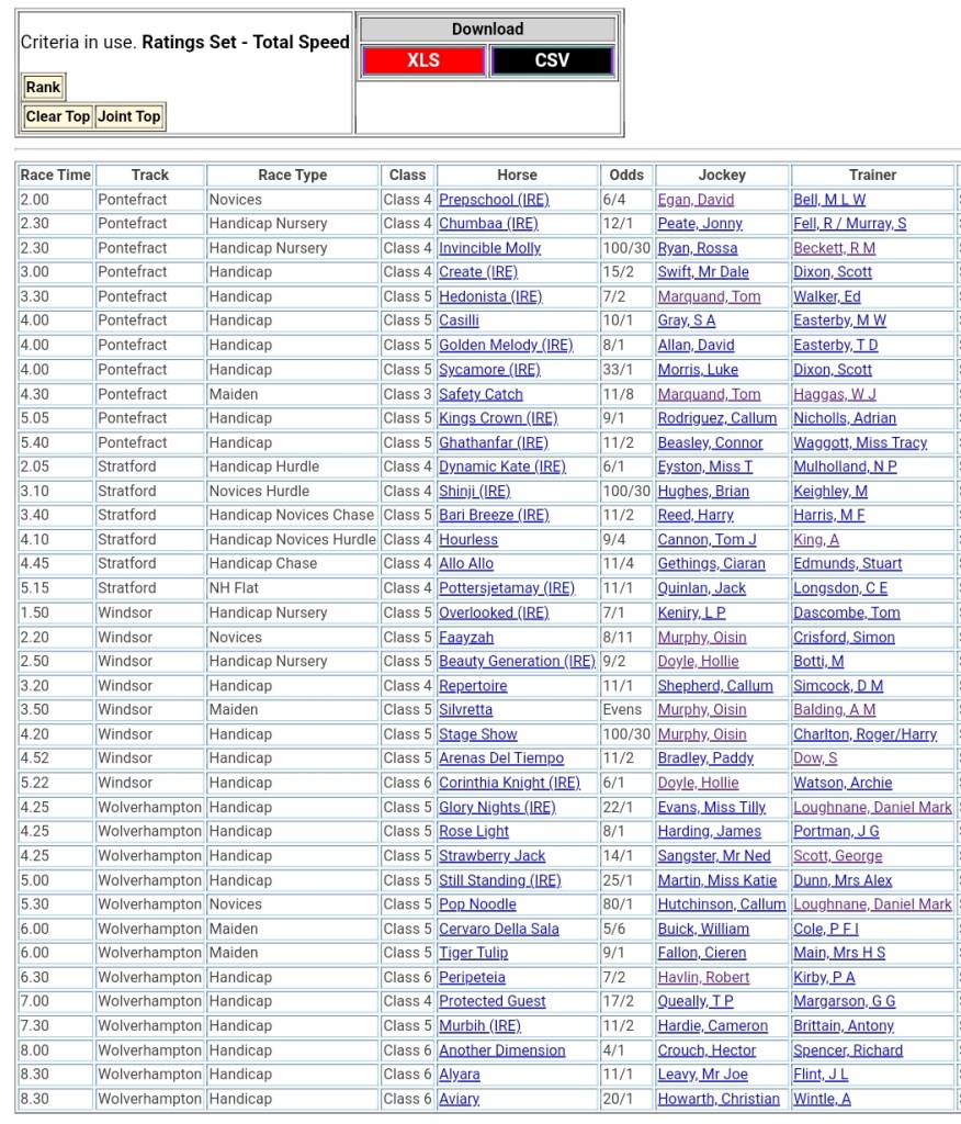 Top Speed Rated for today’s meetings ⏱️⤵️