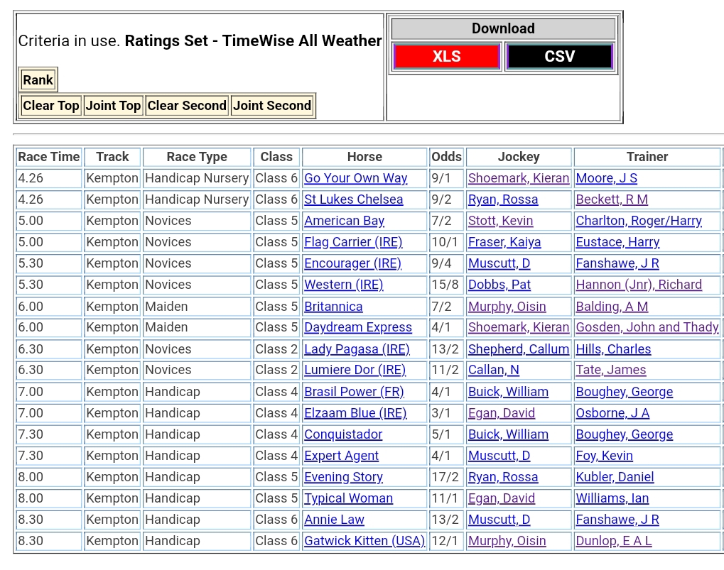 Top Speed Rated for today’s meetings ⏱️⤵️