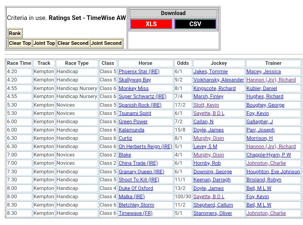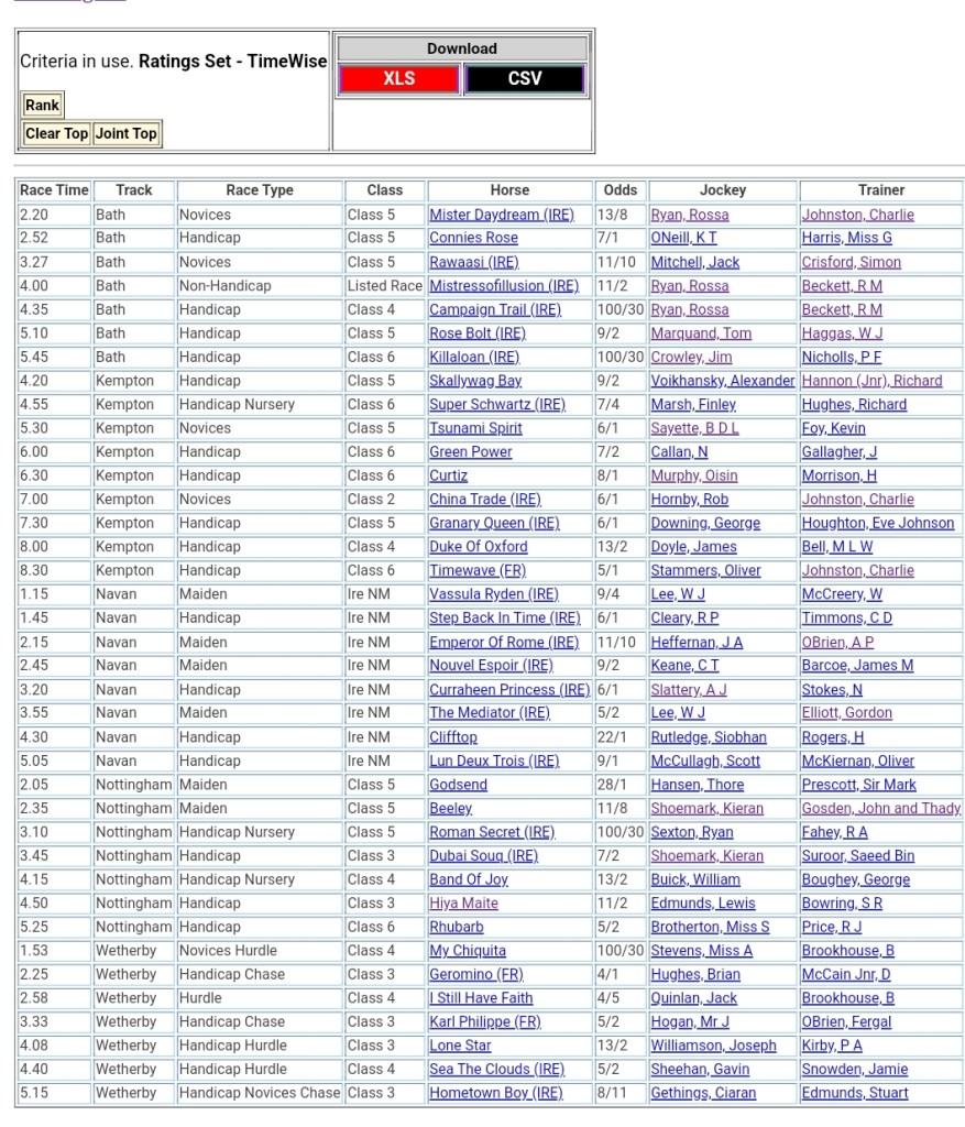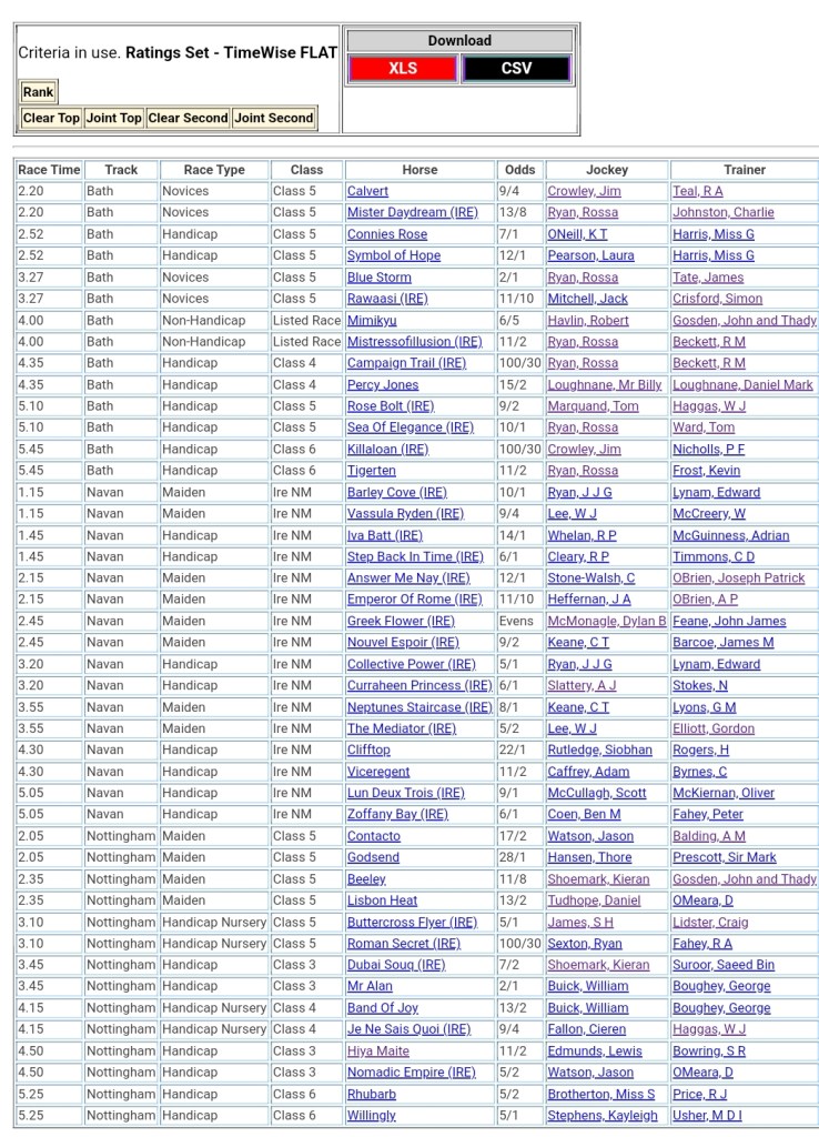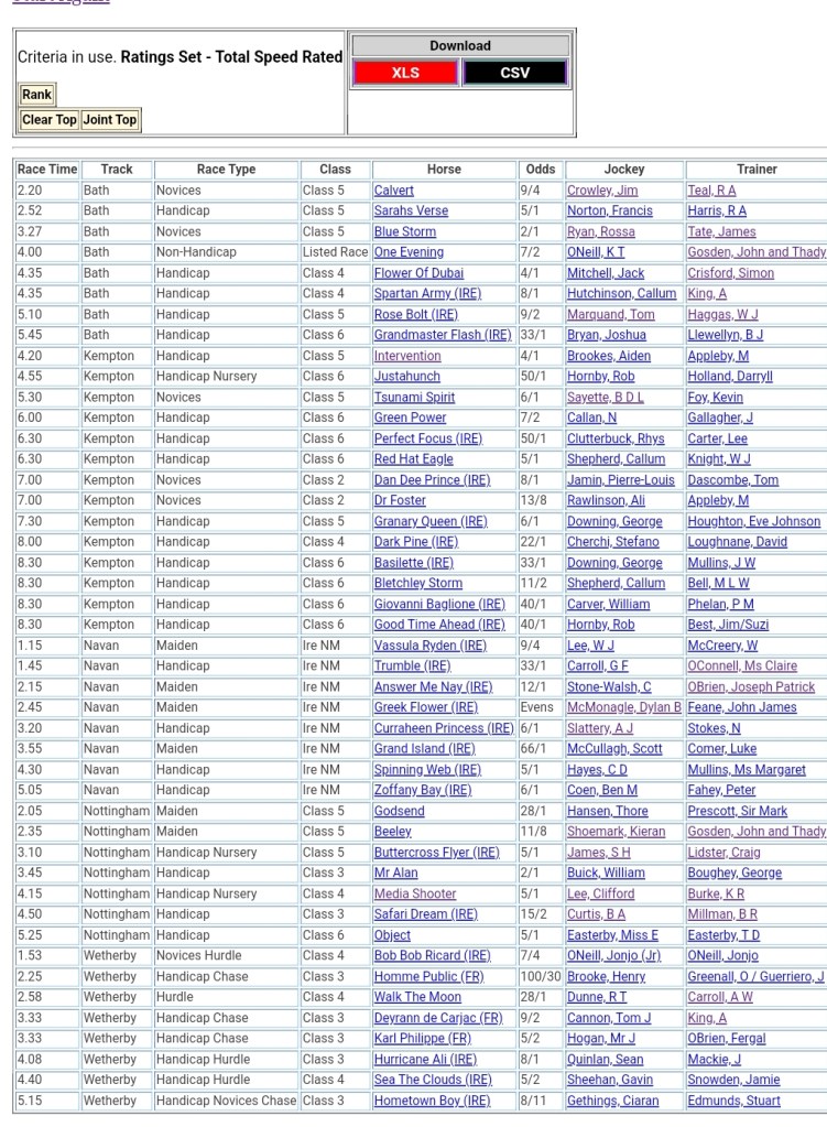 Top Speed Rated for today’s meetings ⏱️⤵️