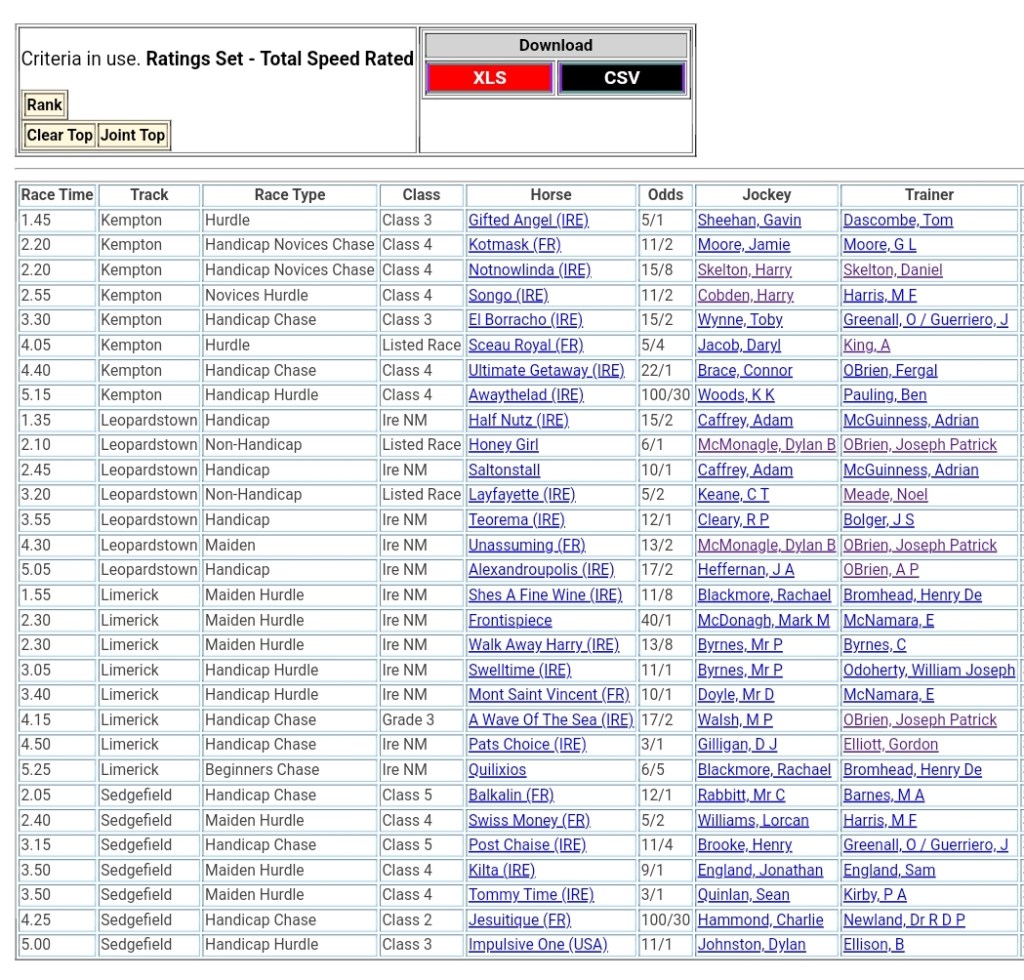 Top Speed Rated for today’s meetings ⏱️⤵️