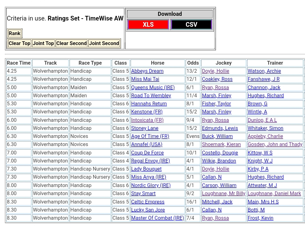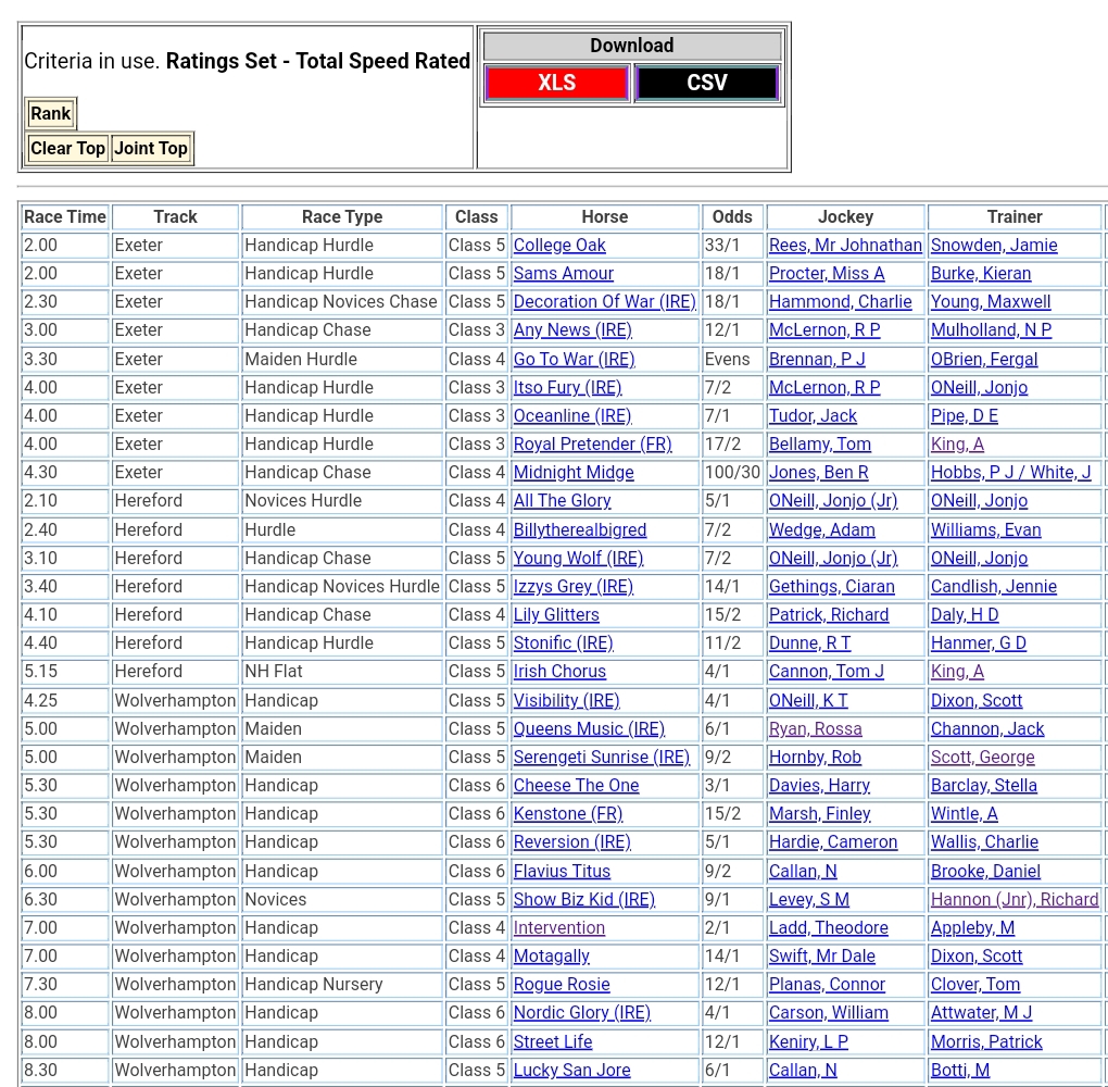 Top Speed Rated for today’s meetings ⏱️⤵️