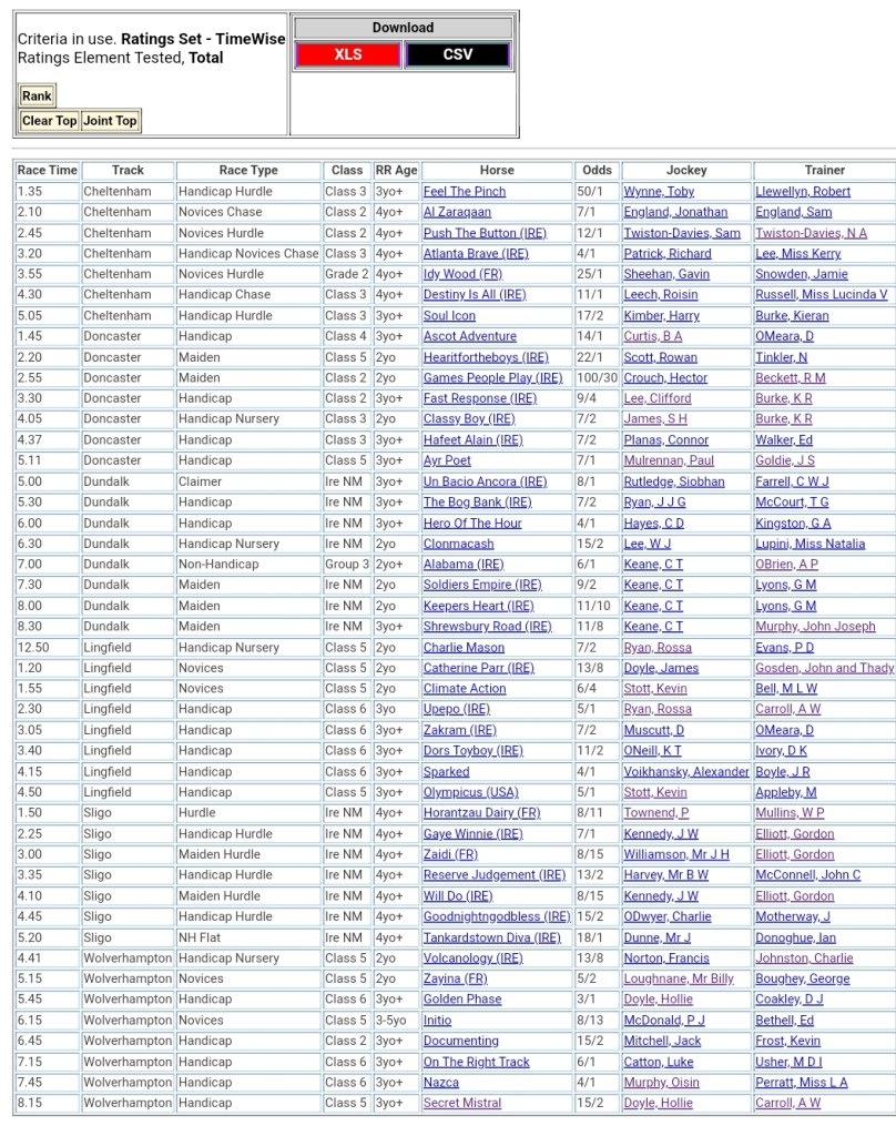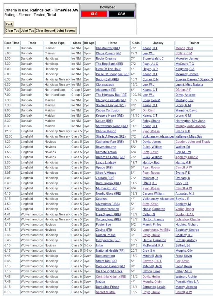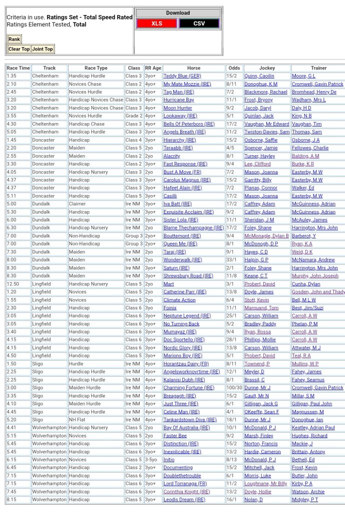 Top Speed Rated for today’s meetings ⏱️⤵️