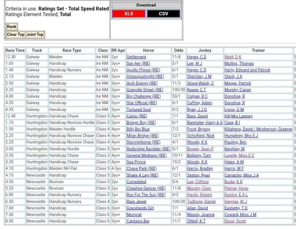 Top Speed Rated for today’s meetings ⏱️⤵️