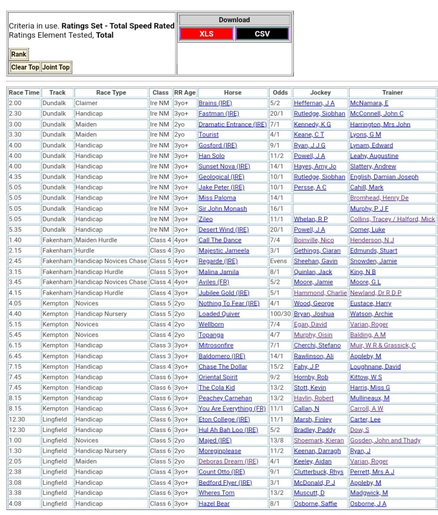 Top Speed Rated for today’s meetings ⏱️⤵️