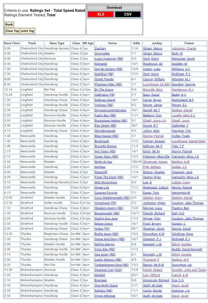 Top Speed Rated for today’s meetings ⏱️⤵️