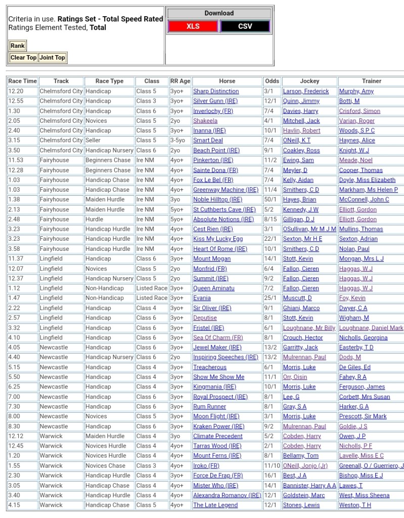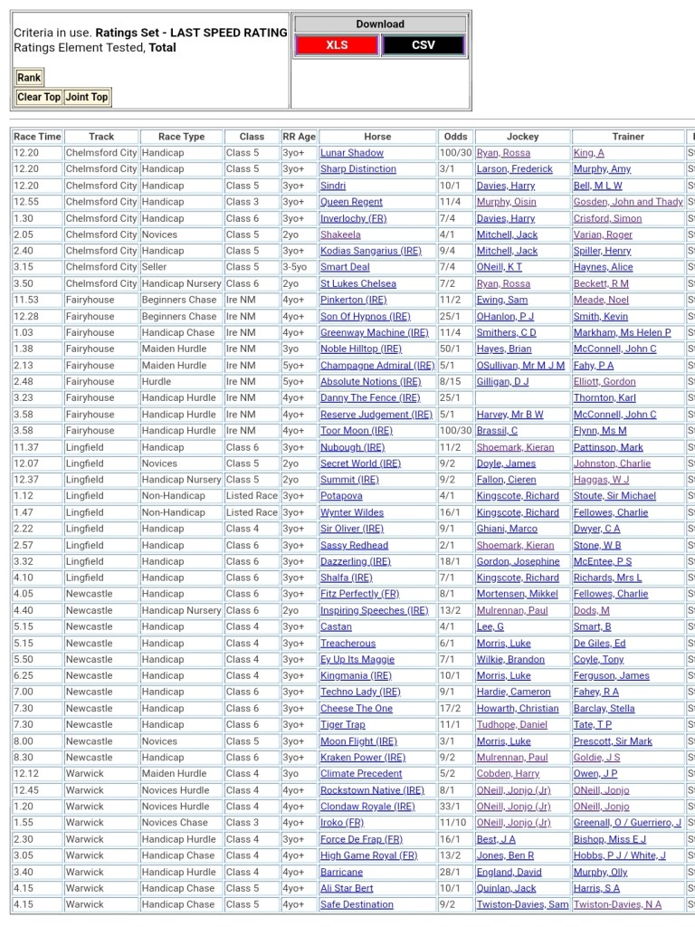 Top Speed Rated for today’s meetings ⏱️⤵️
