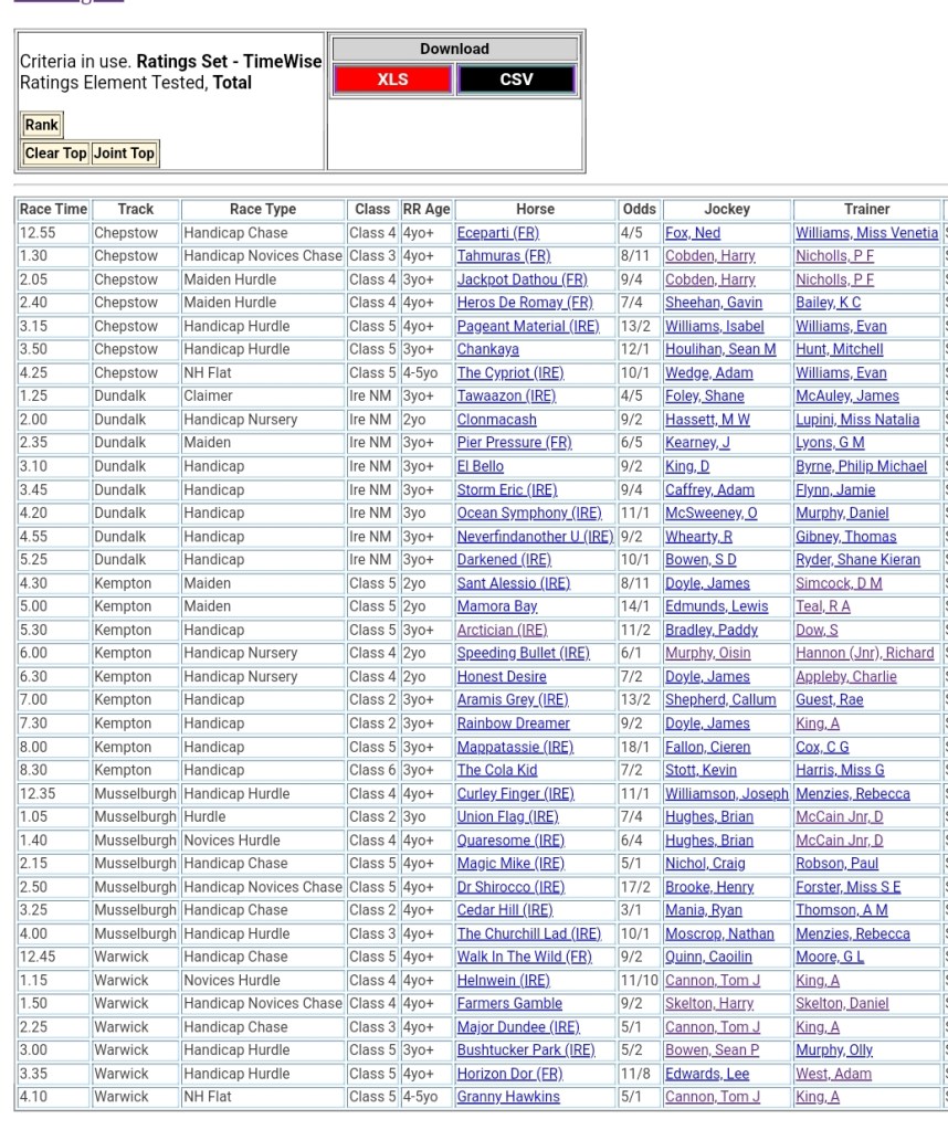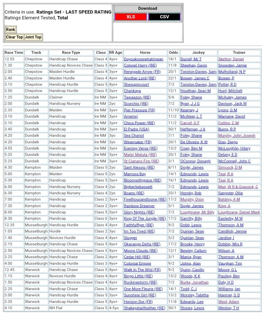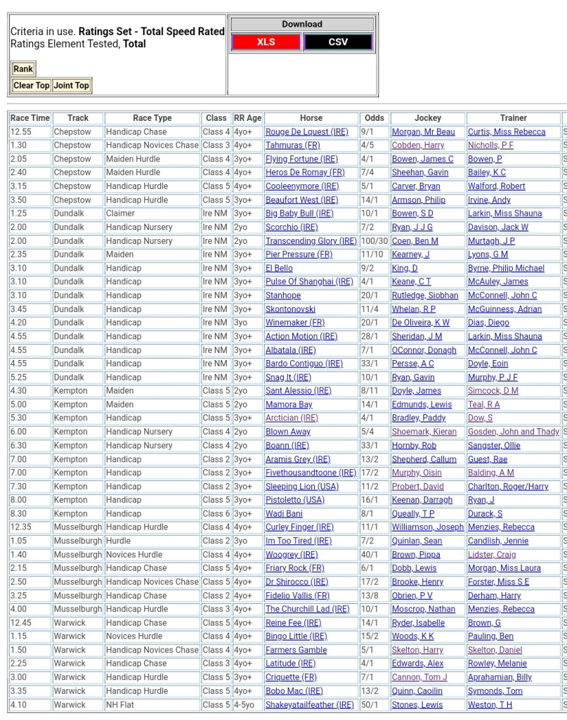 Top Speed Rated for today’s meetings ⏱️⤵️