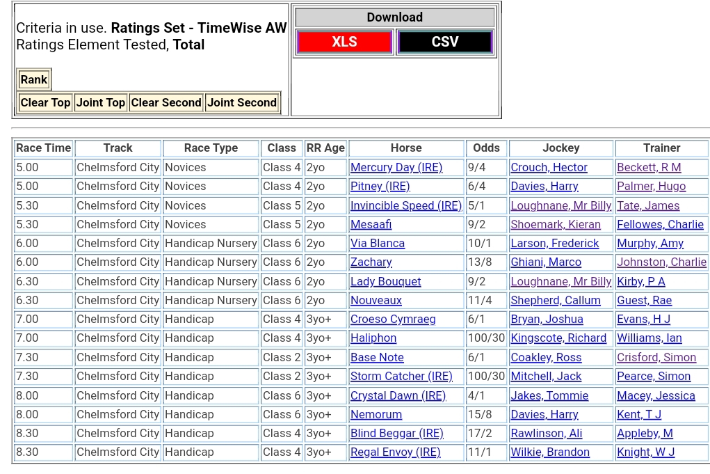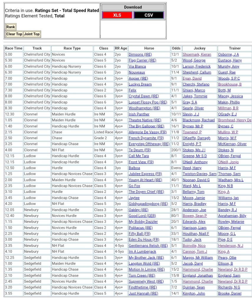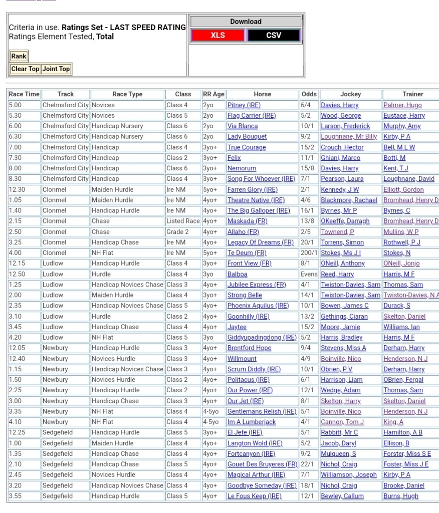 Top Speed Rated for today’s meetings ⏱️⤵️