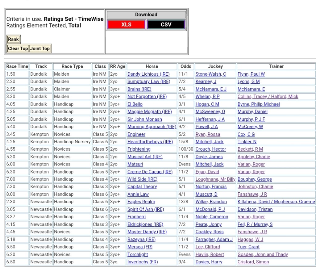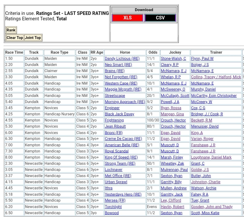Top Speed Rated for today’s meetings ⏱️⤵️