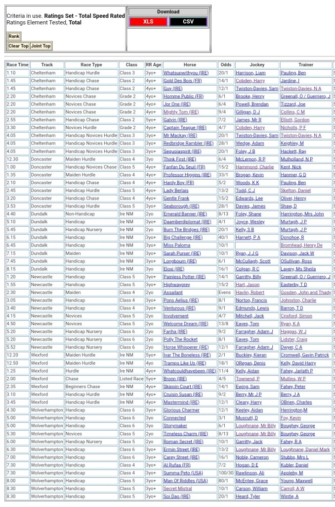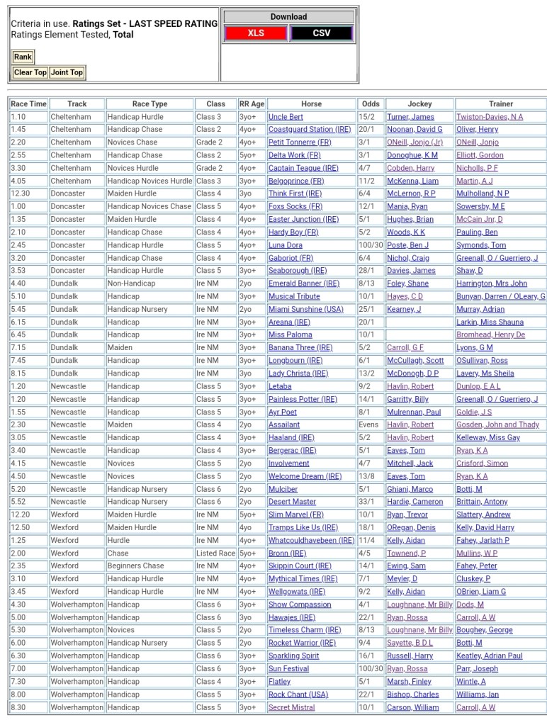 Top Speed Rated for today’s meetings ⏱️⤵️
