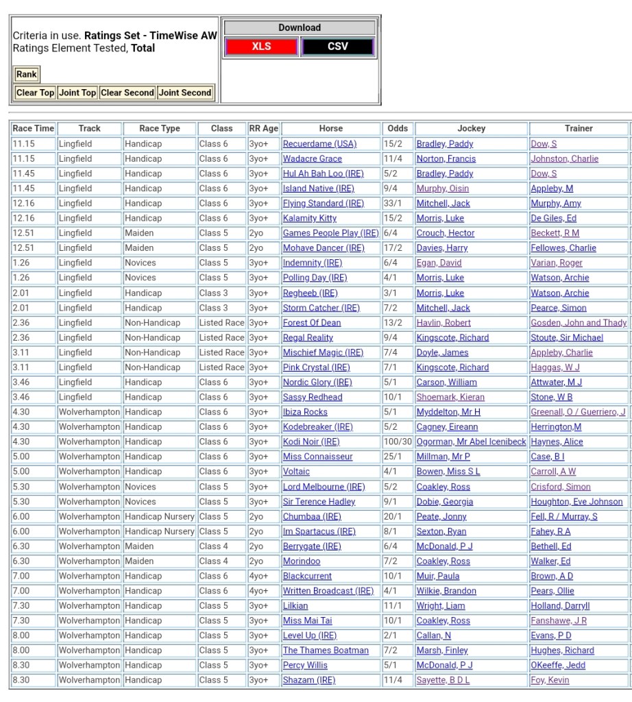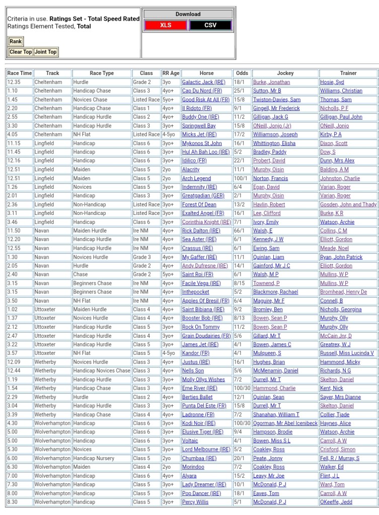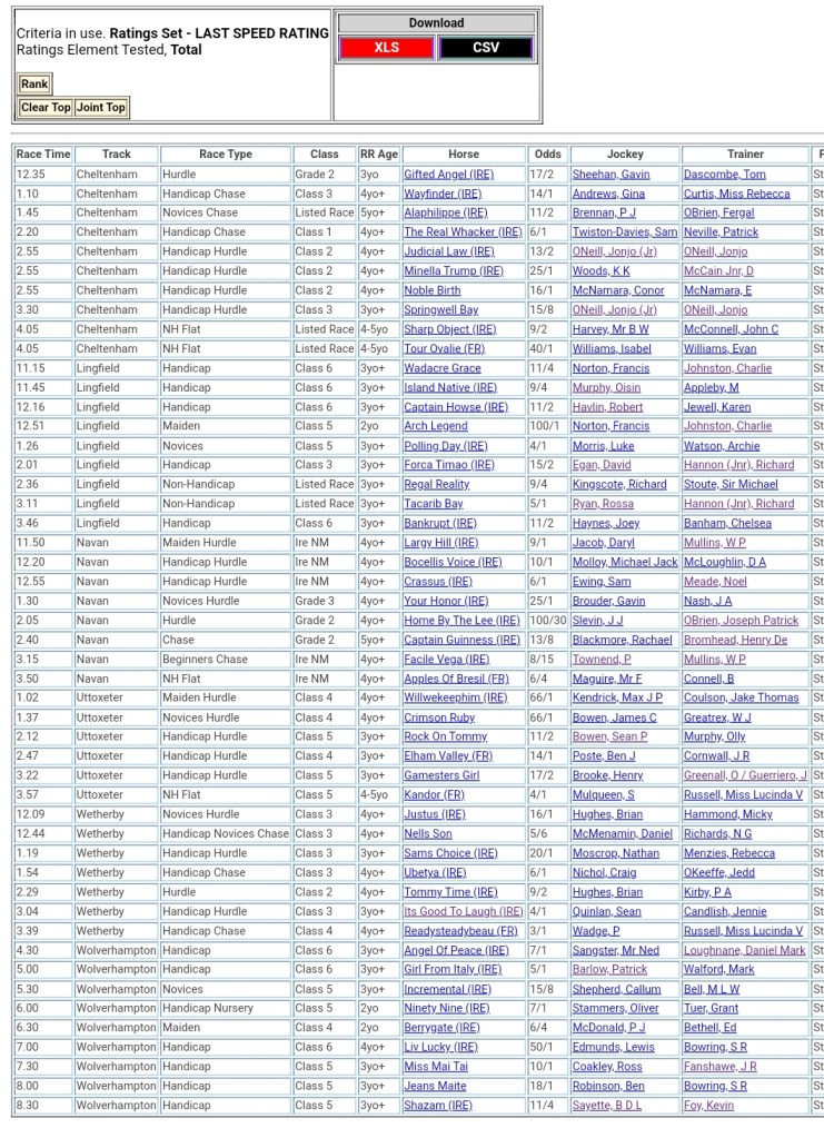 Top Speed Rated for today’s meetings ⏱️⤵️