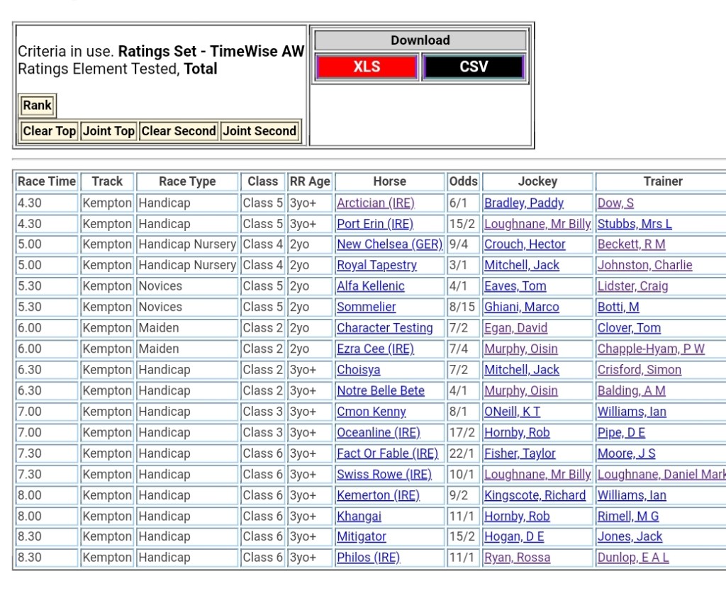 Top Speed Rated for today’s meetings ⏱️⤵️