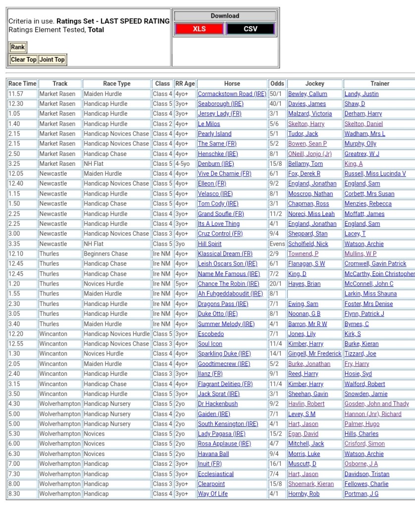 Top Speed Rated for today’s meetings ⏱️⤵️