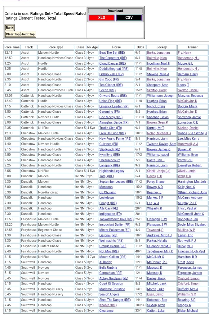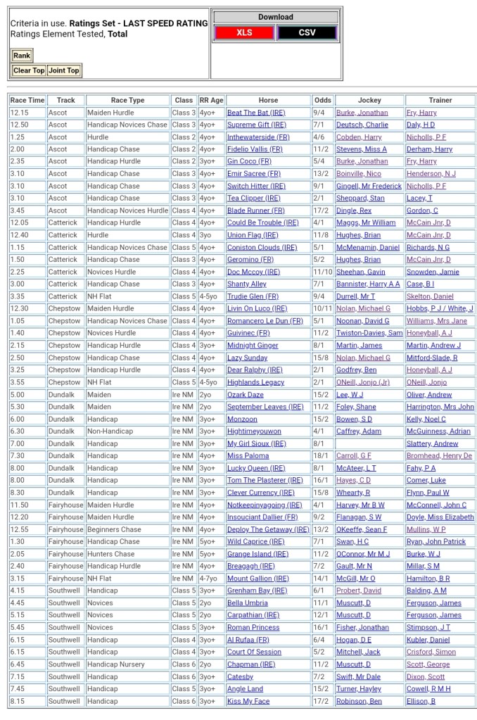 Top Speed Rated for today’s meetings ⏱️⤵️