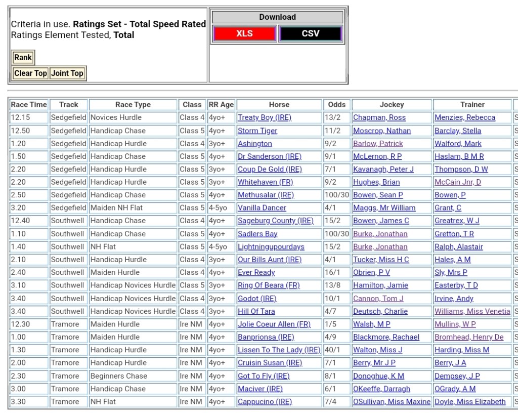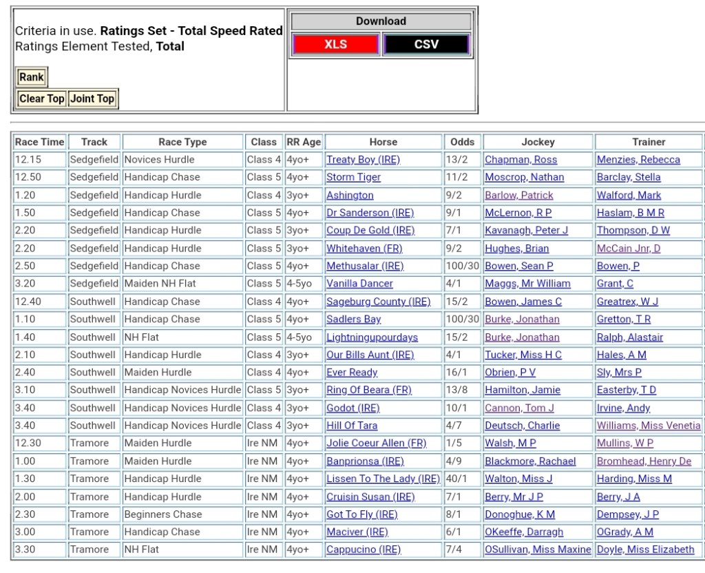 Top Speed Rated for today’s meetings ⏱️⤵️