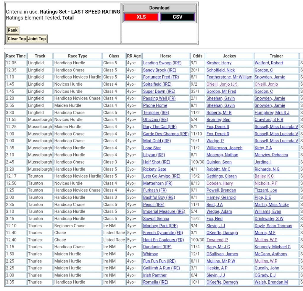 Top Speed Rated for today’s meetings ⏱️⤵️