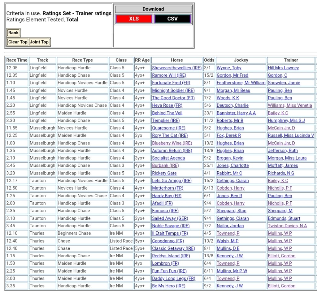 Top trainer Rated for today’s meetings 🏇⤵️