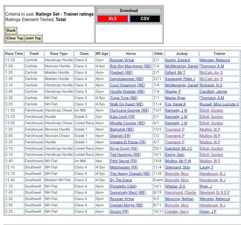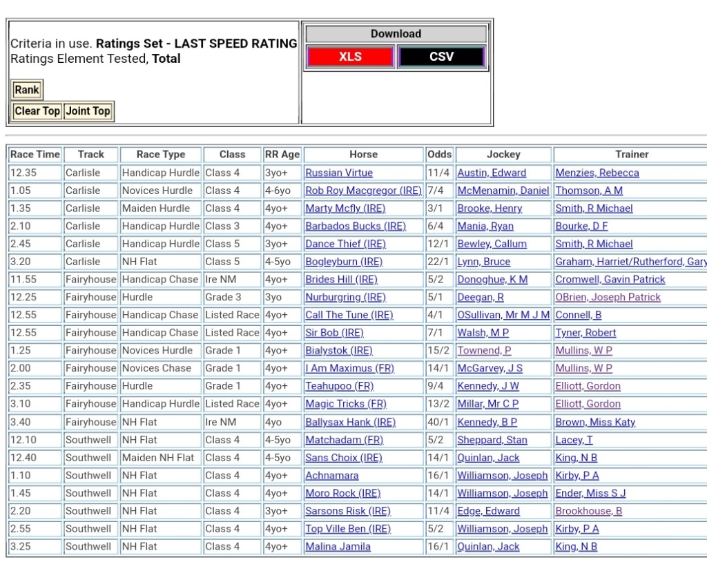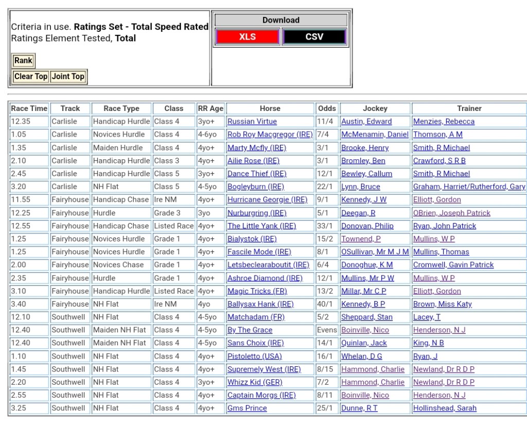 Top Speed Rated for today’s meetings ⏱️⤵️