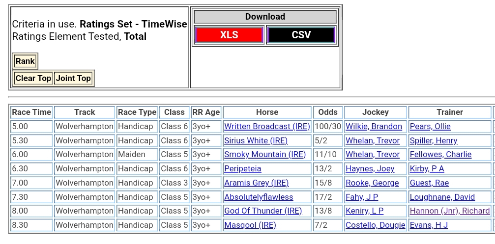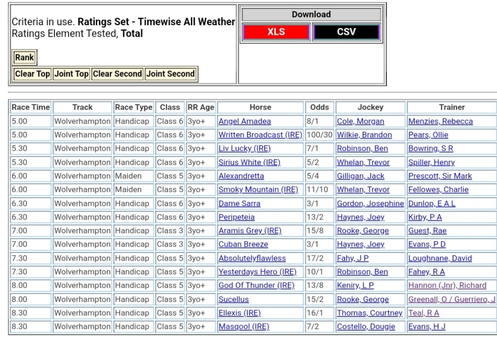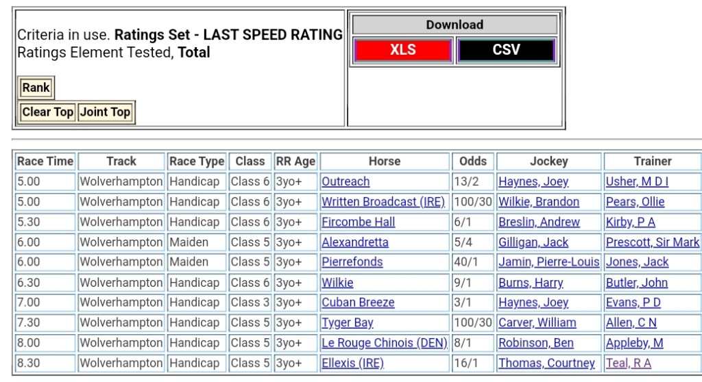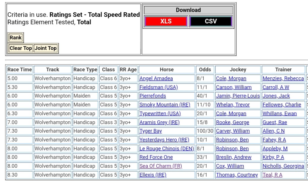 Top Speed Rated for today’s meeting at Wolverhampton ⏱️⤵️