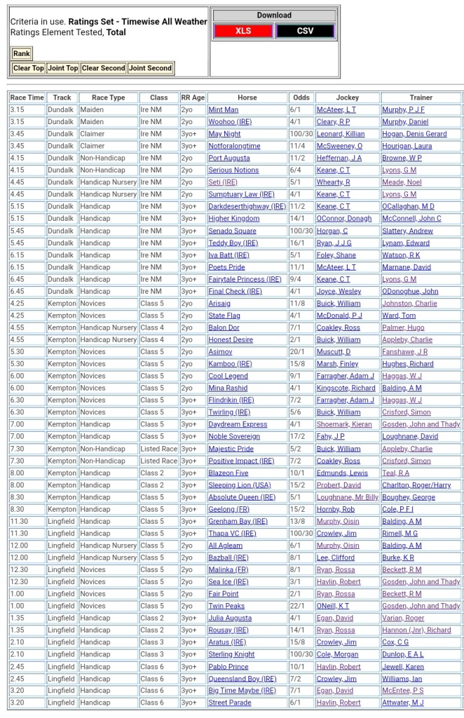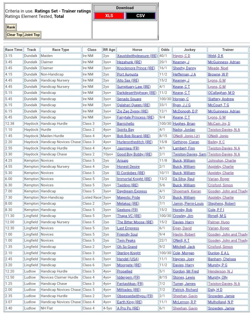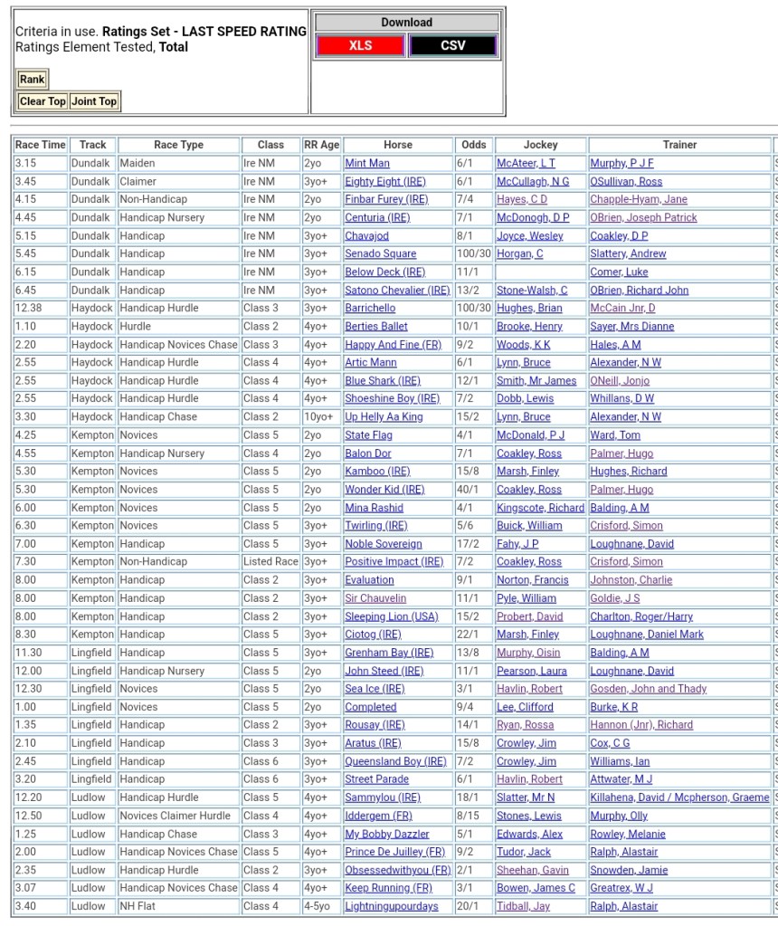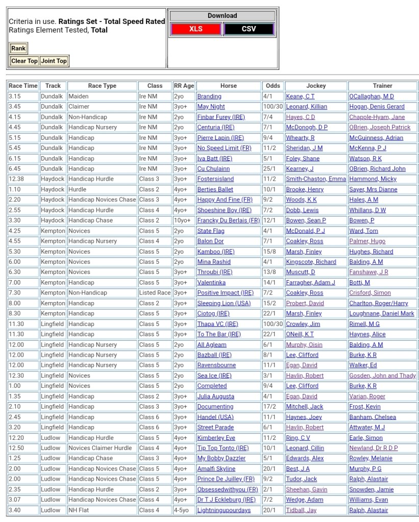 Top Speed Rated for today’s meetings ⏱️⤵️