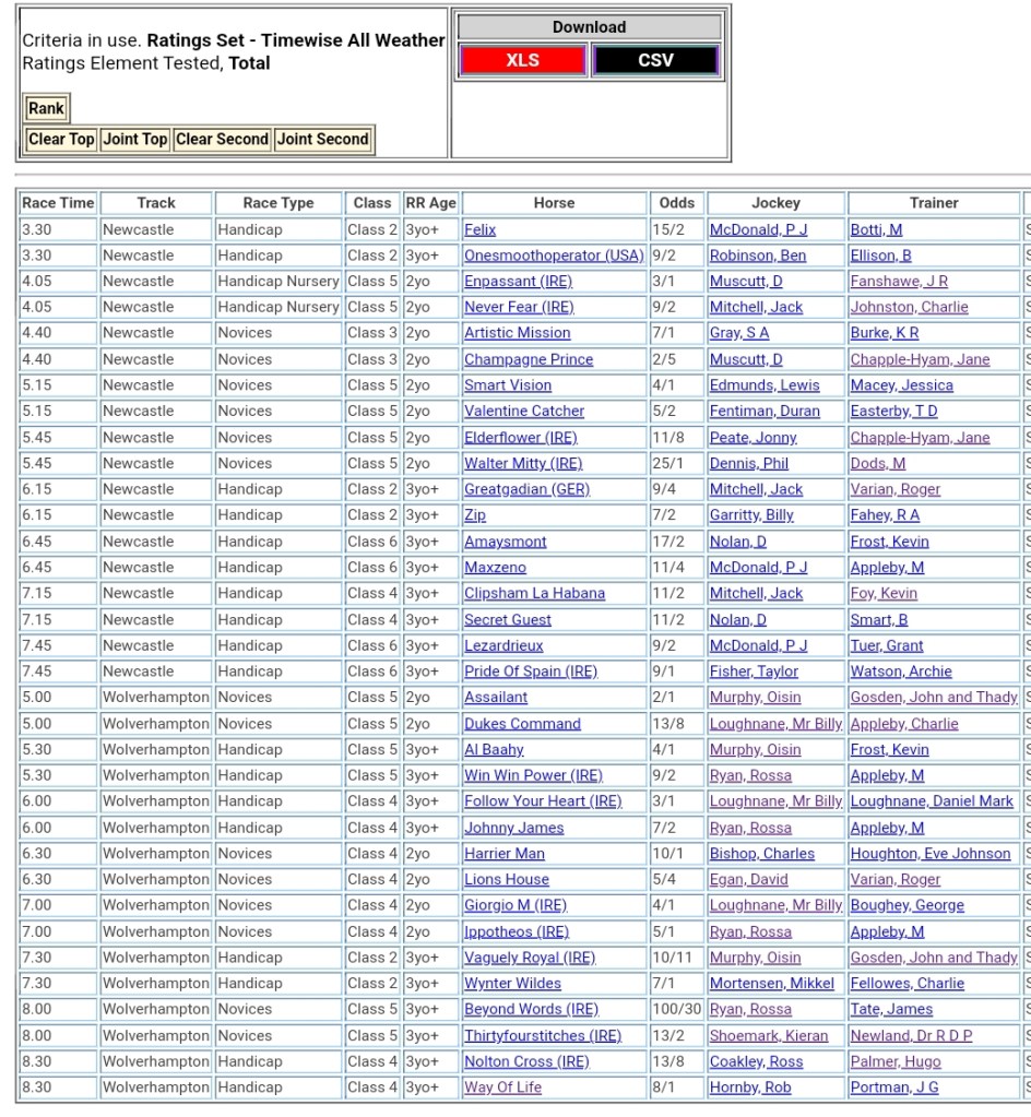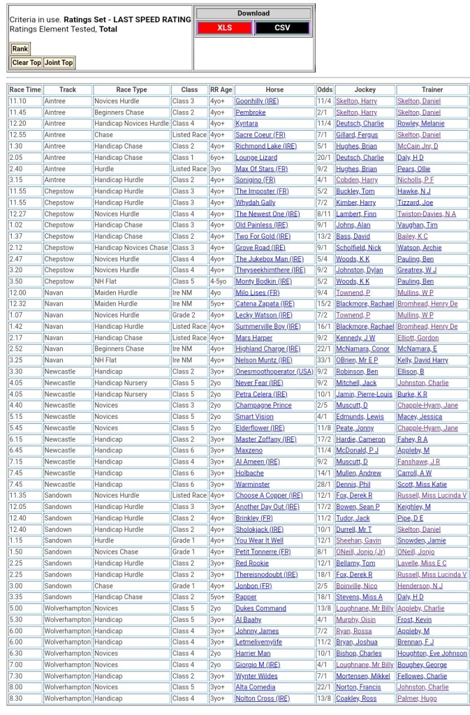 Top Speed Rated for today’s meetings ⏱️⤵️