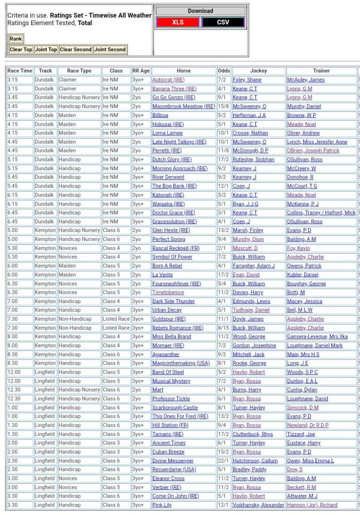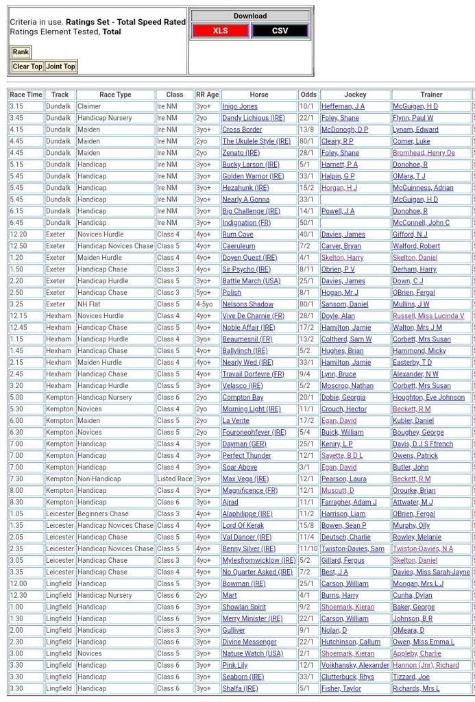 Top Speed Rated for today’s meetings ⏱️⤵️