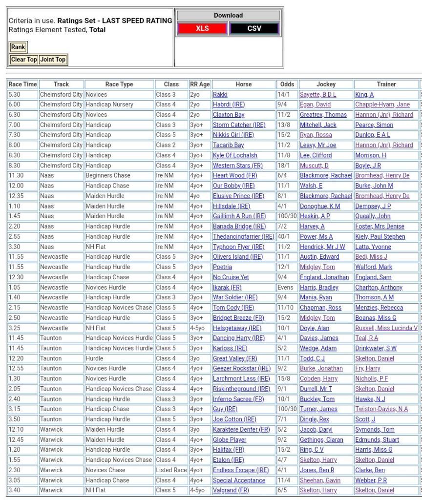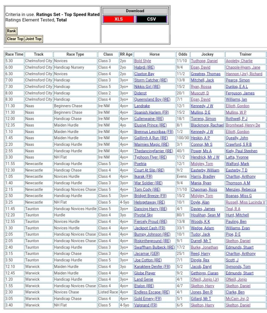 Top Speed Rated for today’s meetings ⏱️⤵️