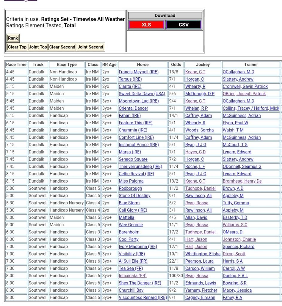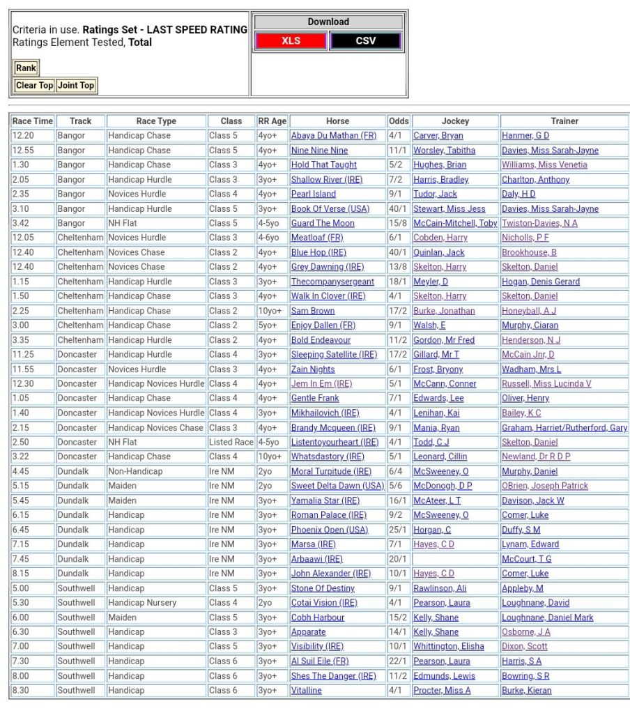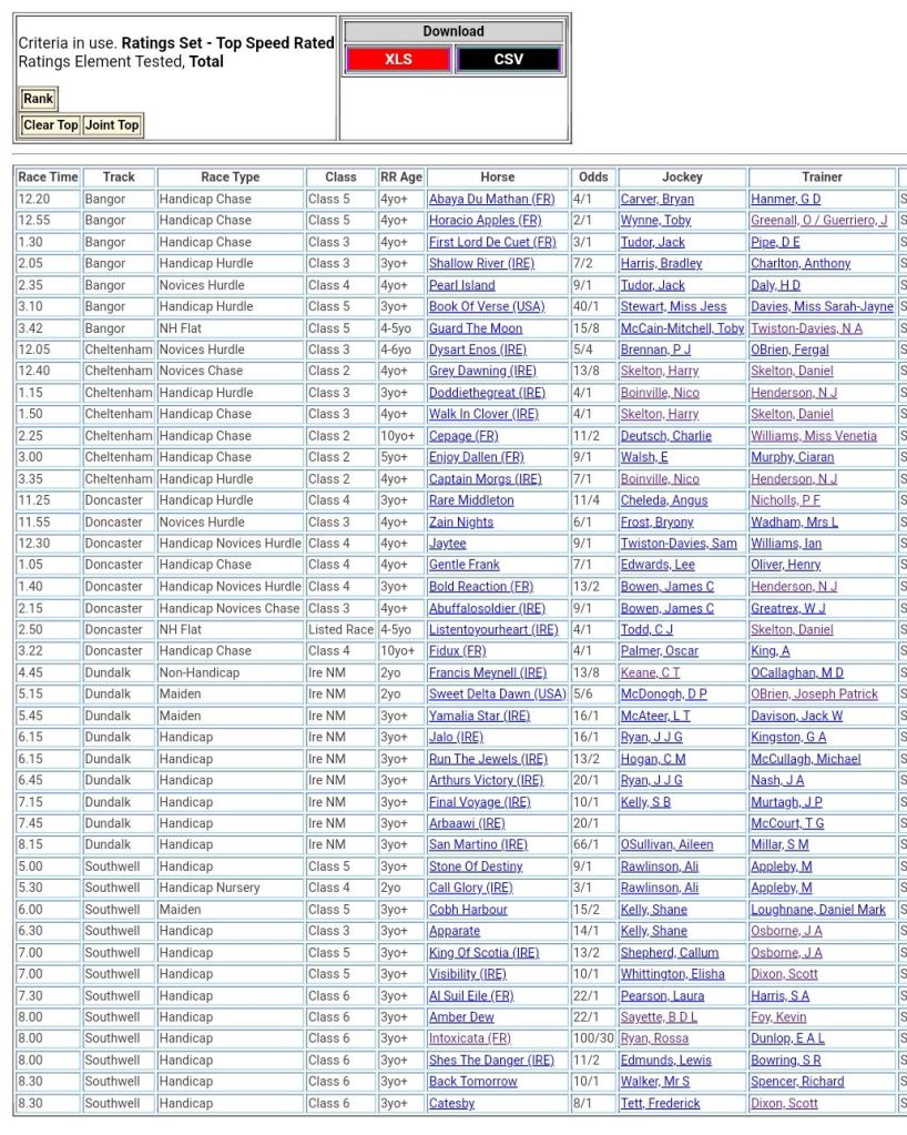 Top Speed Rated for today’s meetings ⏱️⤵️